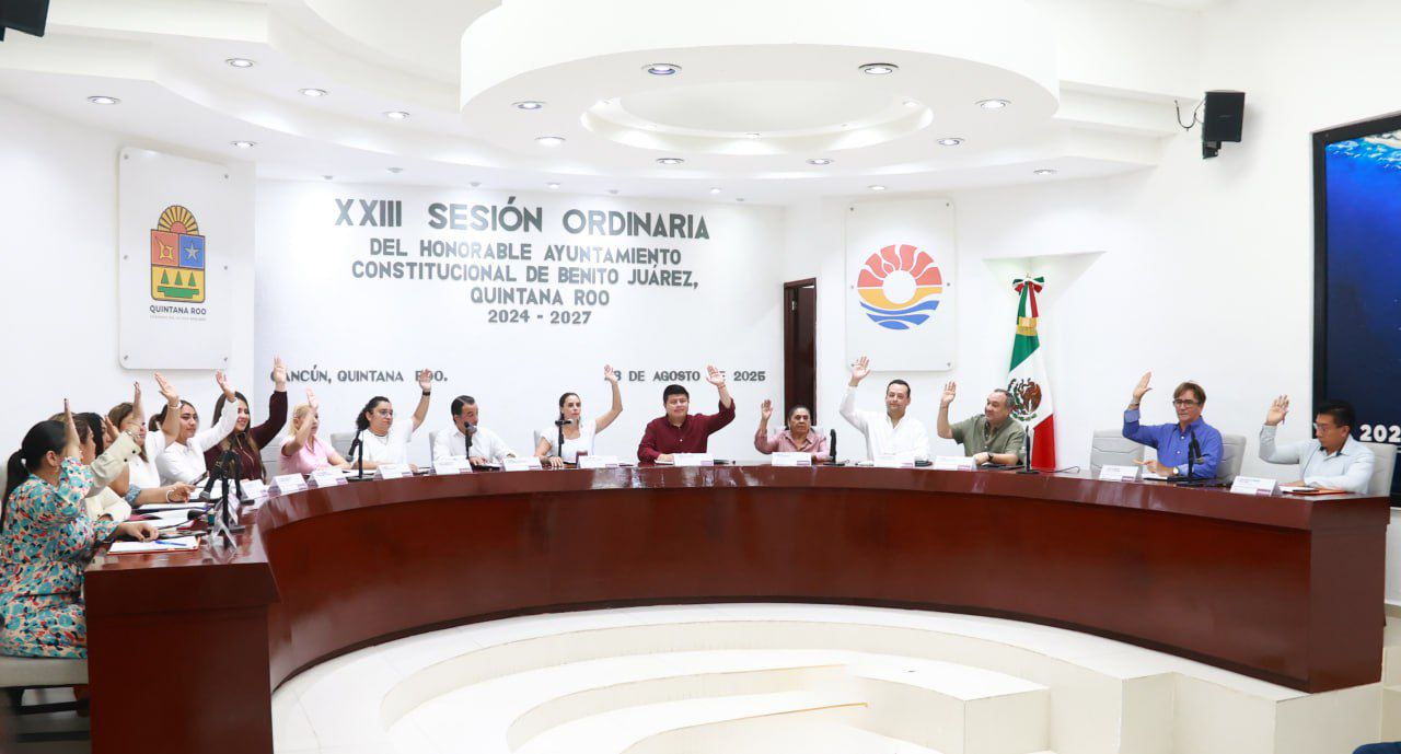 Cancún, Q. R., a 28 de agosto de 2025.- En el marco de la Vigésima Tercera Sesión Ordinaria, encabezada por la Presidenta Municipal, Ana Paty Peralta, el Cabildo del Ayuntamiento de Benito Juárez aprobó por unanimidad de votos un convenio de colaboración con la Agencia de Proyectos Estratégicos del Estado de Quintana Roo (AGEPRO), con el propósito de dar continuidad a las acciones de mantenimiento y limpieza de las áreas verdes que se encuentran dentro del “Parque de la Equidad”, para que los cancunenses puedan seguir disfrutando de este espacio público, seguro, inclusivo y accesible.