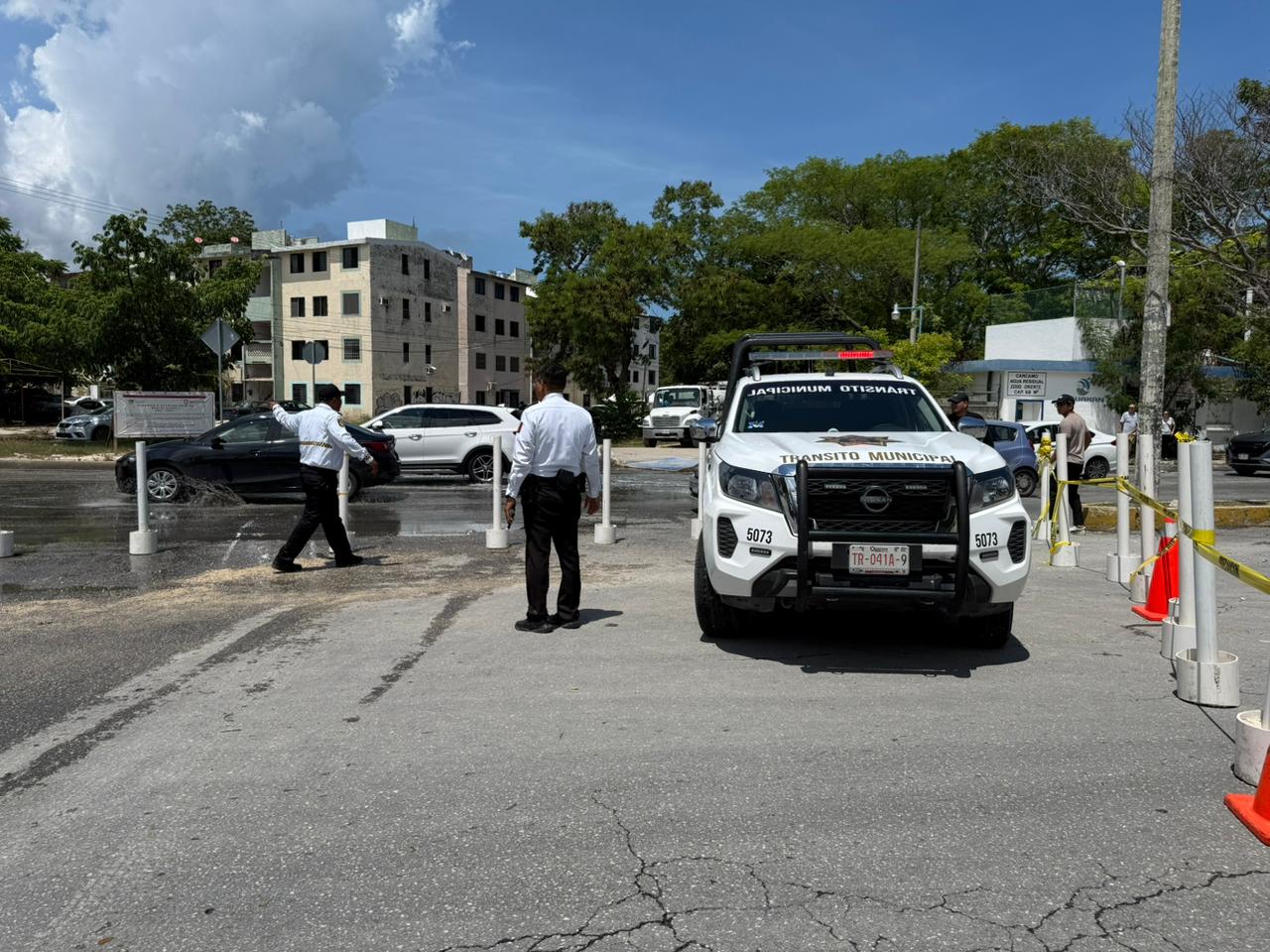 Por parte de la autoridad local, se dispuso a dos elementos de Tránsito con una patrulla para que ayuden en los cortes viales que correspondan en esta avenida principal, tomando en cuenta que el tramo afectado de la Avenida Nichupté, es desde la Avenida del Bosque hacia la Avenida Bonampak, en el cruce con las calles Libélula y Luciérnaga.