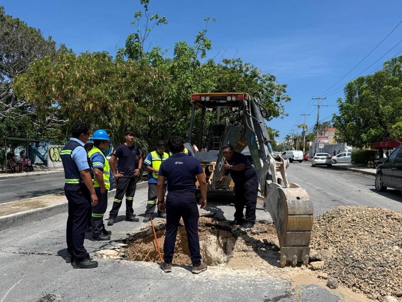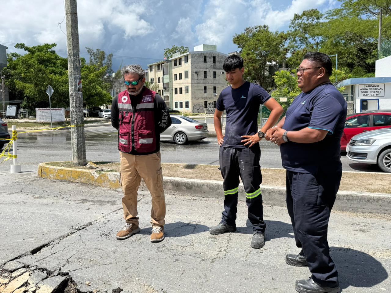 De acuerdo a los ingenieros responsables de Aguakan, la fuga corresponde a una línea de 20 pulgadas de asbesto que se fracturó, por lo que los trabajos tardarán alrededor de ocho a 10 horas, lapso en el que se pide a la ciudadanía prudencia al conducir por la zona.