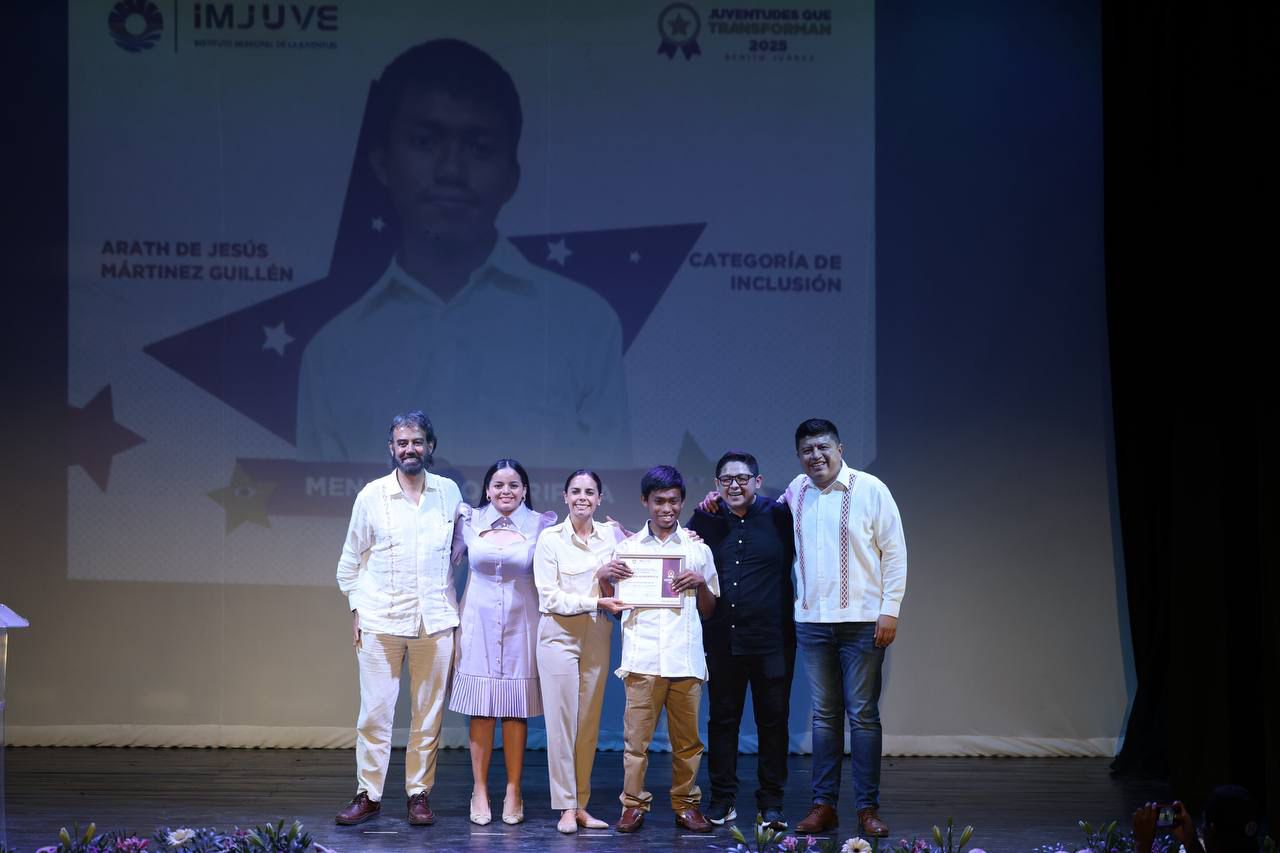Por su parte el titular del IMJUVE, Santiago Augusto Frías Canche, mencionó que la ceremonia no solo fue para entregar los reconocimientos, sino para recordarles que son el motor más poderoso para el municipio, el estado y el país. “Ustedes son el presente, son quienes están moviendo la aguja, quienes están sembrando semillas en la ciencia, en el arte, en la defensa del medio ambiente, en la acción social, en la igualdad, en el emprendimiento y en la inclusión, por lo que nuestro compromiso es lograr que esas semillas germinen”.