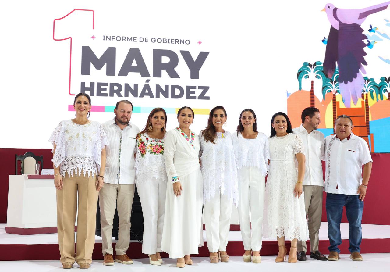 De igual manera, presenció el Primer Informe de Gobierno de la Presidenta Municipal de Felipe Carrillo Puerto, Maricarmen Hernández Solís, a quien felicitó por rendir un informe dinámico y con resultados que continúan transformando el bienestar de las y los carrilloportenses.