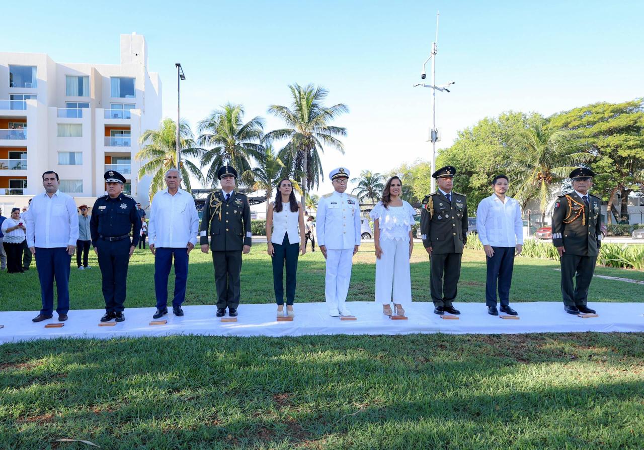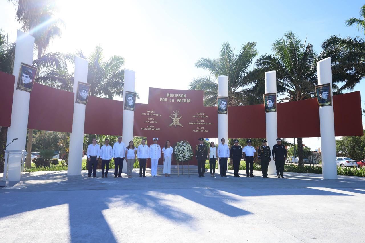 Esta distinción realizada a los pies del monumento dedicado a estos alusivos personajes en el kilómetro 5.5 del Boulevard Kukulcán, en la Zona Hotelera, también incluyó el izamiento del lábaro patrio, una salva de fusilería a cargo del 64° Batallón de Infantería, el depósito de una ofrenda floral por parte de las autoridades presentes y la guardia de honor, así como la entonación del Himno del Heroico Colegio Militar.