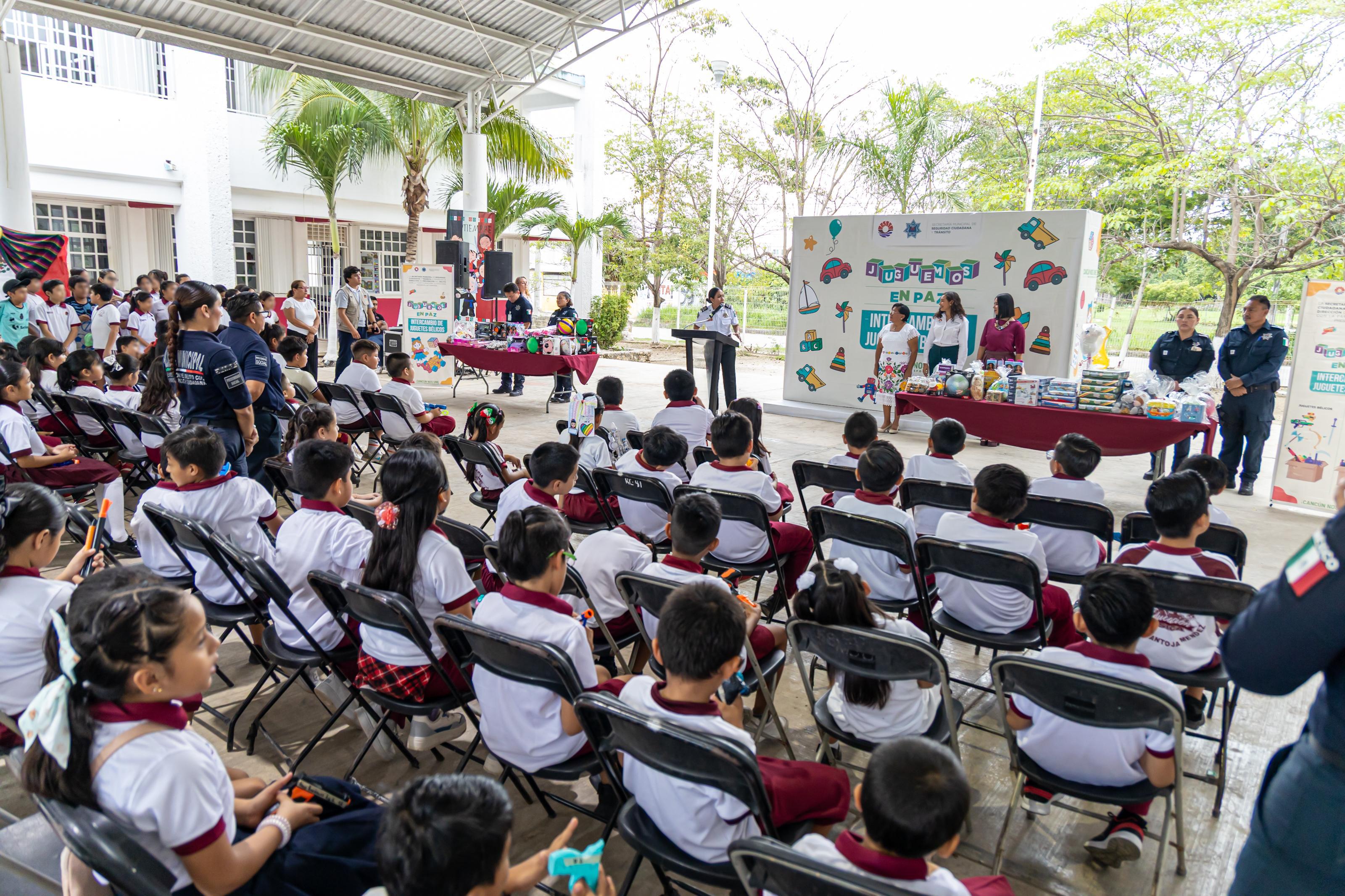 Cancún, Q. R., a 23 de septiembre de 2025.– La Dirección de Prevención del Delito con la Participación Ciudadana de la Secretaría Municipal de Seguridad Ciudadana y Tránsito (SMSCyT) de Benito Juárez, en coordinación con la primaria Mario Pantoja Méndez, ubicada en la Supermanzana 222, llevó a cabo una jornada del programa “Juguemos en Paz”, enfocada en el canje de juguetes bélicos como parte de las acciones de prevención y fortalecimiento de valores.