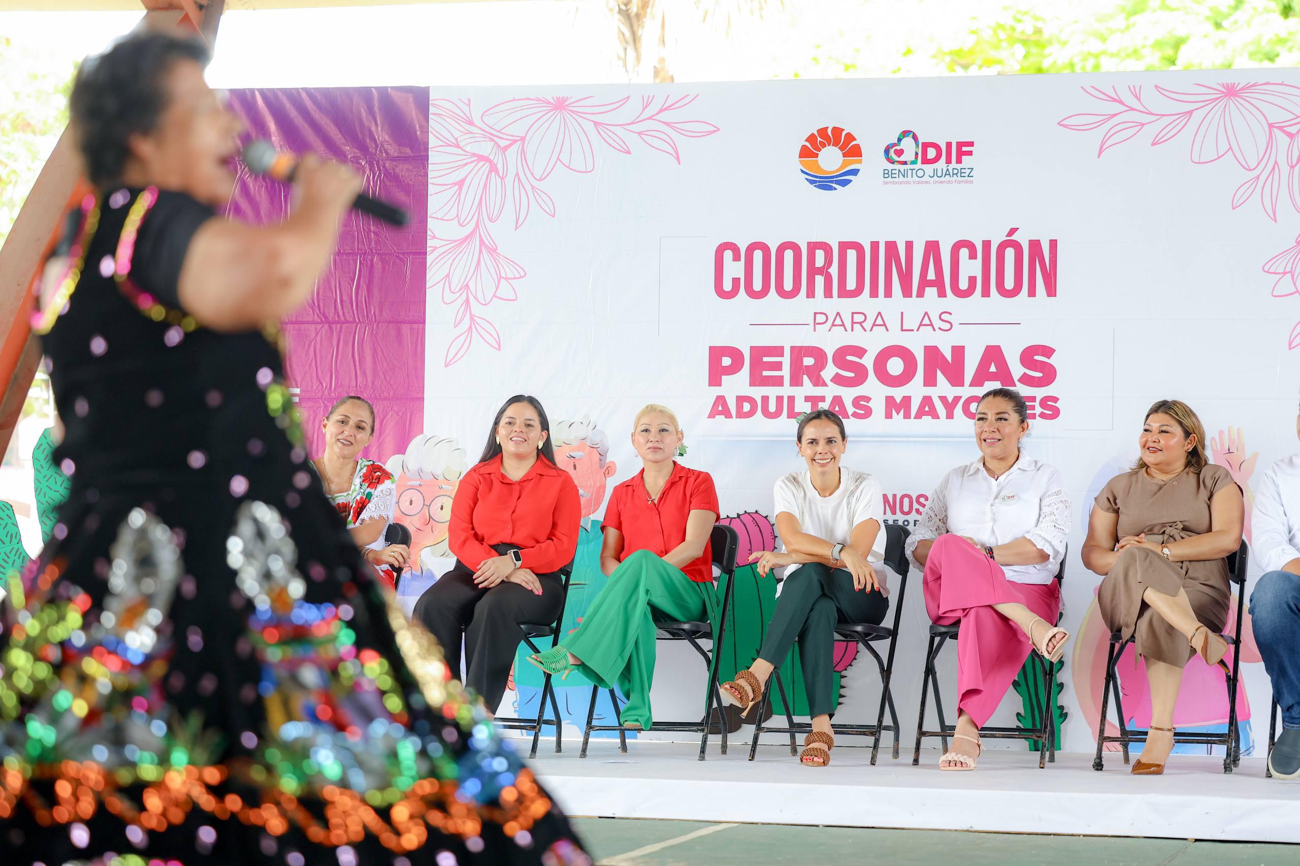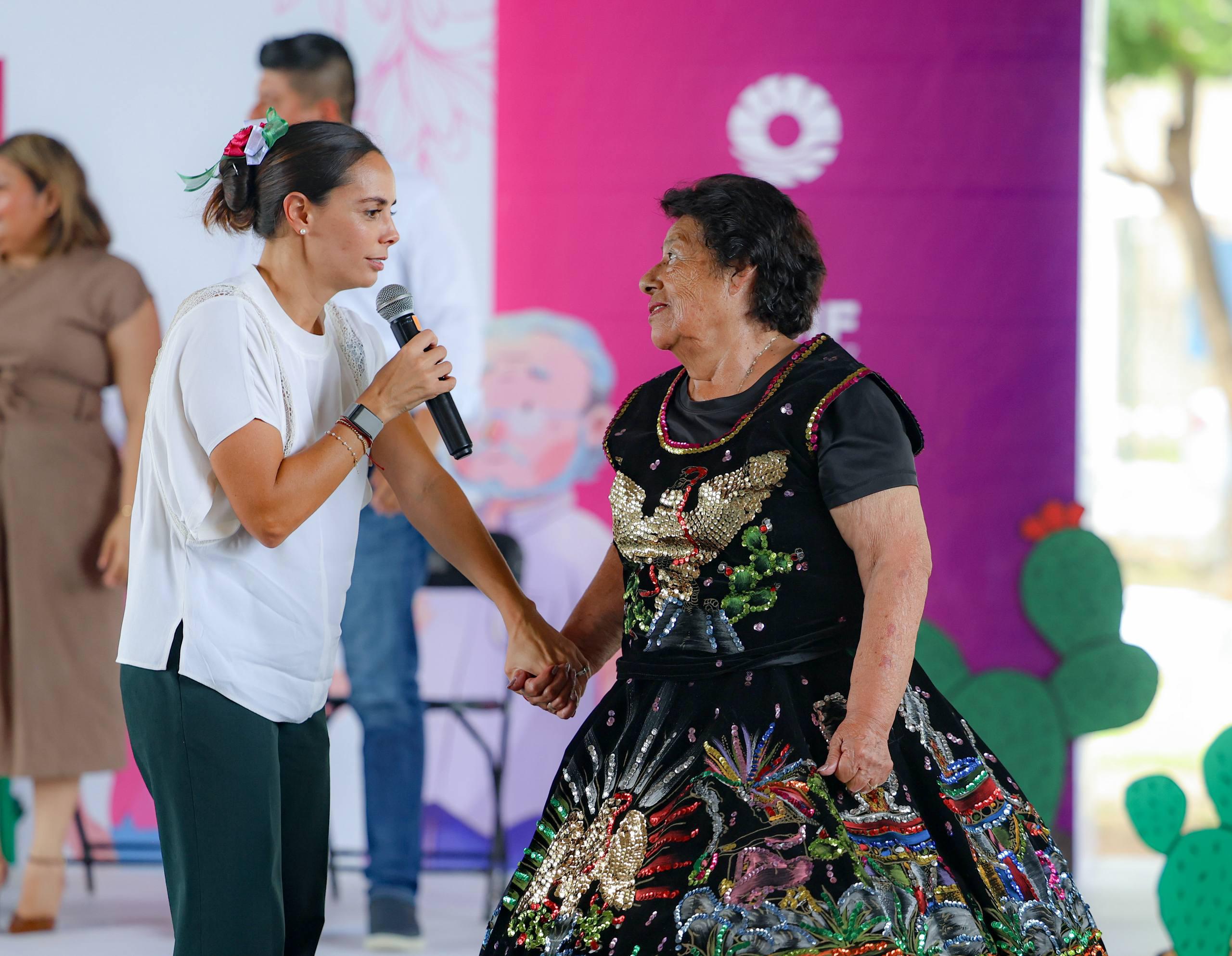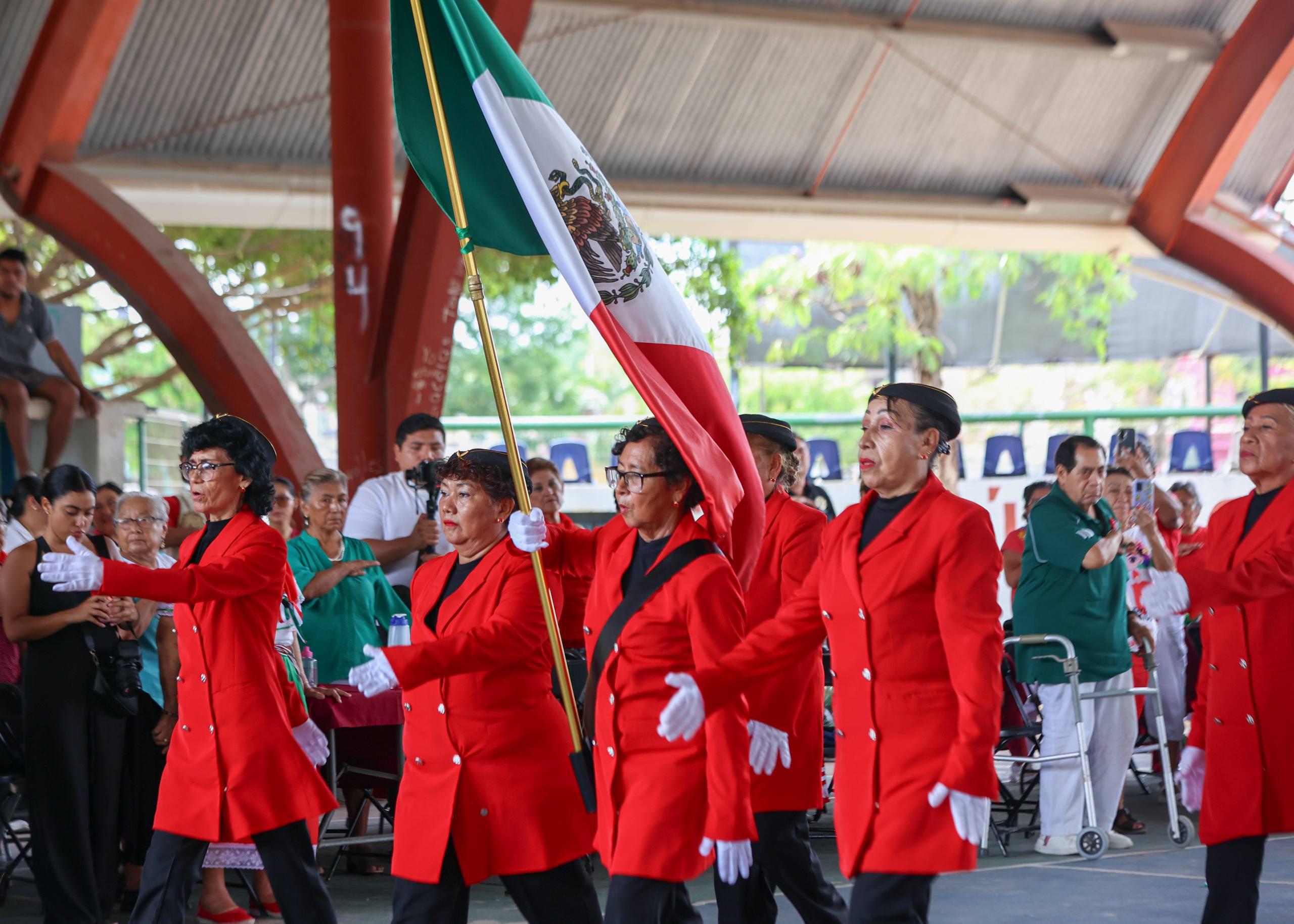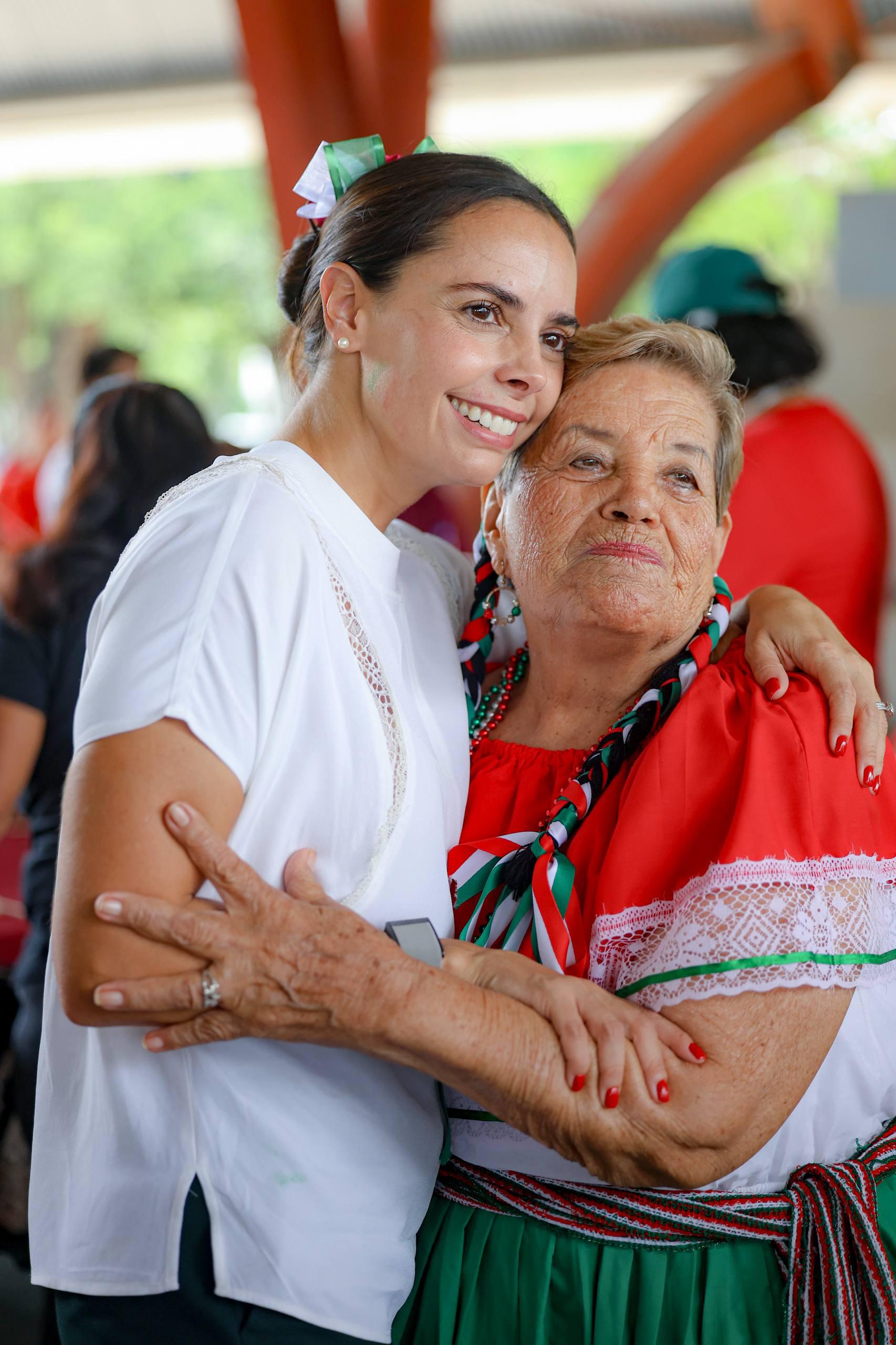 En el Domo Deportivo de la Supermanzana 94, la Primera Autoridad Municipal saludó a los abuelitos y abuelitas quienes con vestimenta regionales y coloridas realzaban este evento, a quienes además les dijo estar muy agradecida con todos ellos por aportar tanto a la comunidad, a sus hijos, nietos y a Cancún.