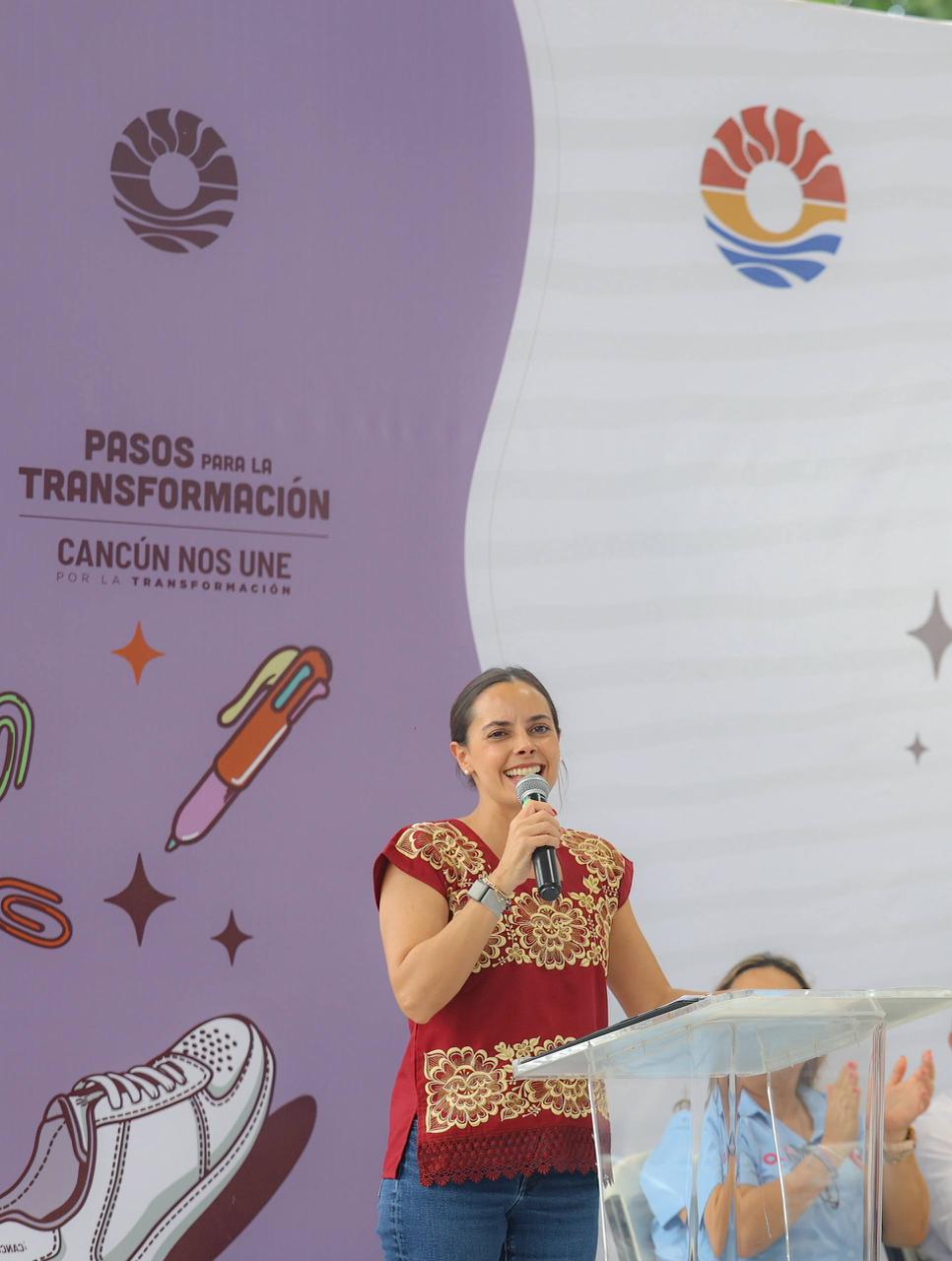 Cancún, Q. R., a 01 de octubre de 2025.- Por segundo año consecutivo, la Presidenta Municipal, Ana Paty Peralta y la Gobernadora, Mara Lezama, pusieron en marcha el programa “Pasos para la Transformación”, con el que se entregarán para ciclo escolar 2025-2026, 119 mil 696 pares de tenis a estudiantes de educación especial, preescolar, primaria y secundaria de escuelas públicas del municipio de Benito Juárez.