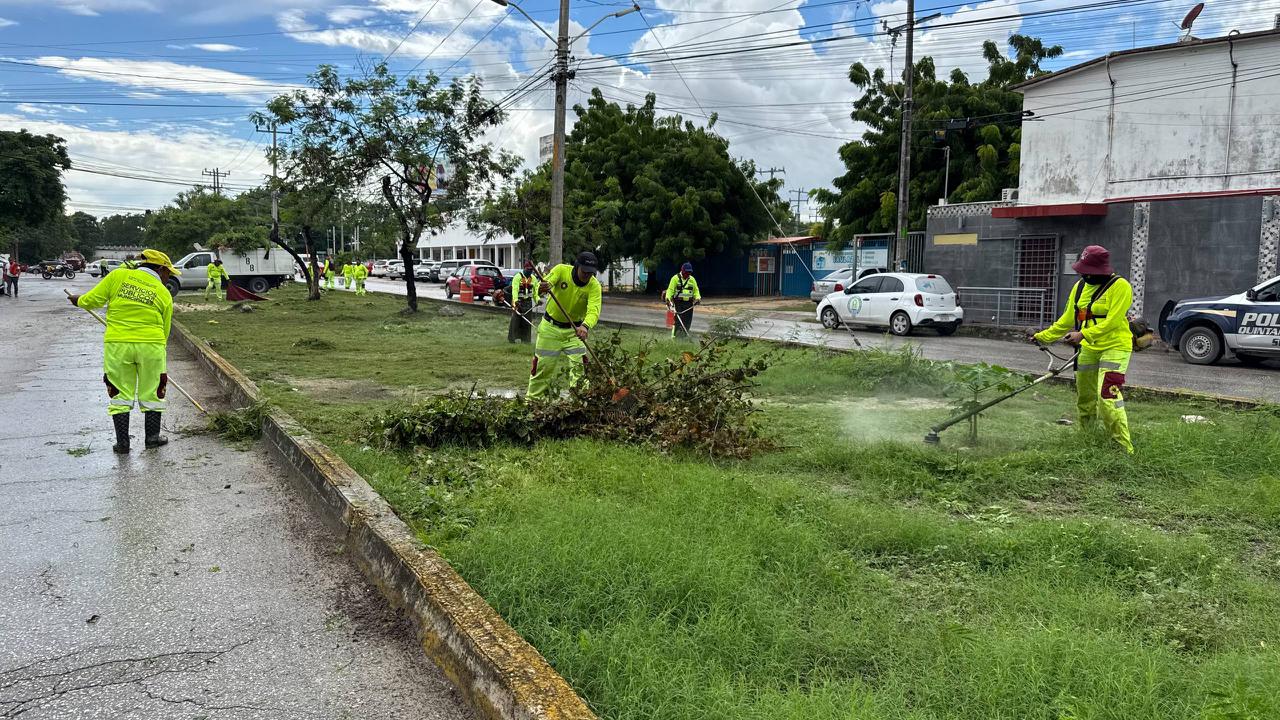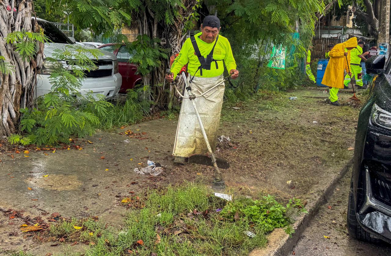 La Primera Autoridad Municipal, acompañada del secretario general del Ayuntamiento de Benito Juárez, Pablo Gutiérrez Fernández y del director general de Servicios Públicos, Antonio de la Torre Chambé, saludaron a las y los vecinos presentes, a quienes comentó que 250 trabajadores se encuentran limpiando y realizando trabajos para evitar los encharcamientos en diferentes puntos de la ciudad.
