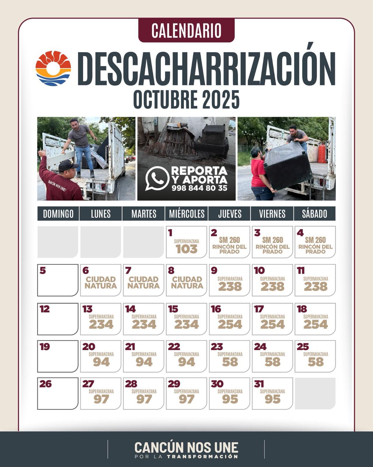 23 al 25 de octubre, del lunes 27 al miércoles 29 en la Supermanzana 97 y