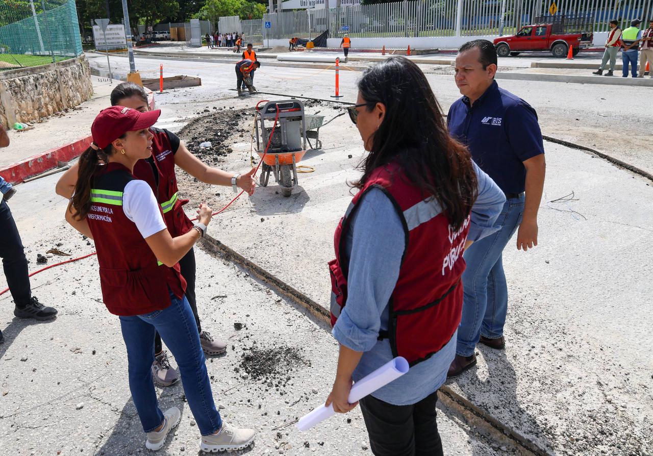 Acompañada de la secretaria municipal de Obras Públicas y Servicios, Samantha Hernández Cardeña, la Primera Autoridad Municipal informó que el proyecto integral beneficia de forma directa a los alumnos de las dos universidades de esa zona que son la UT y La Salle Cancún.