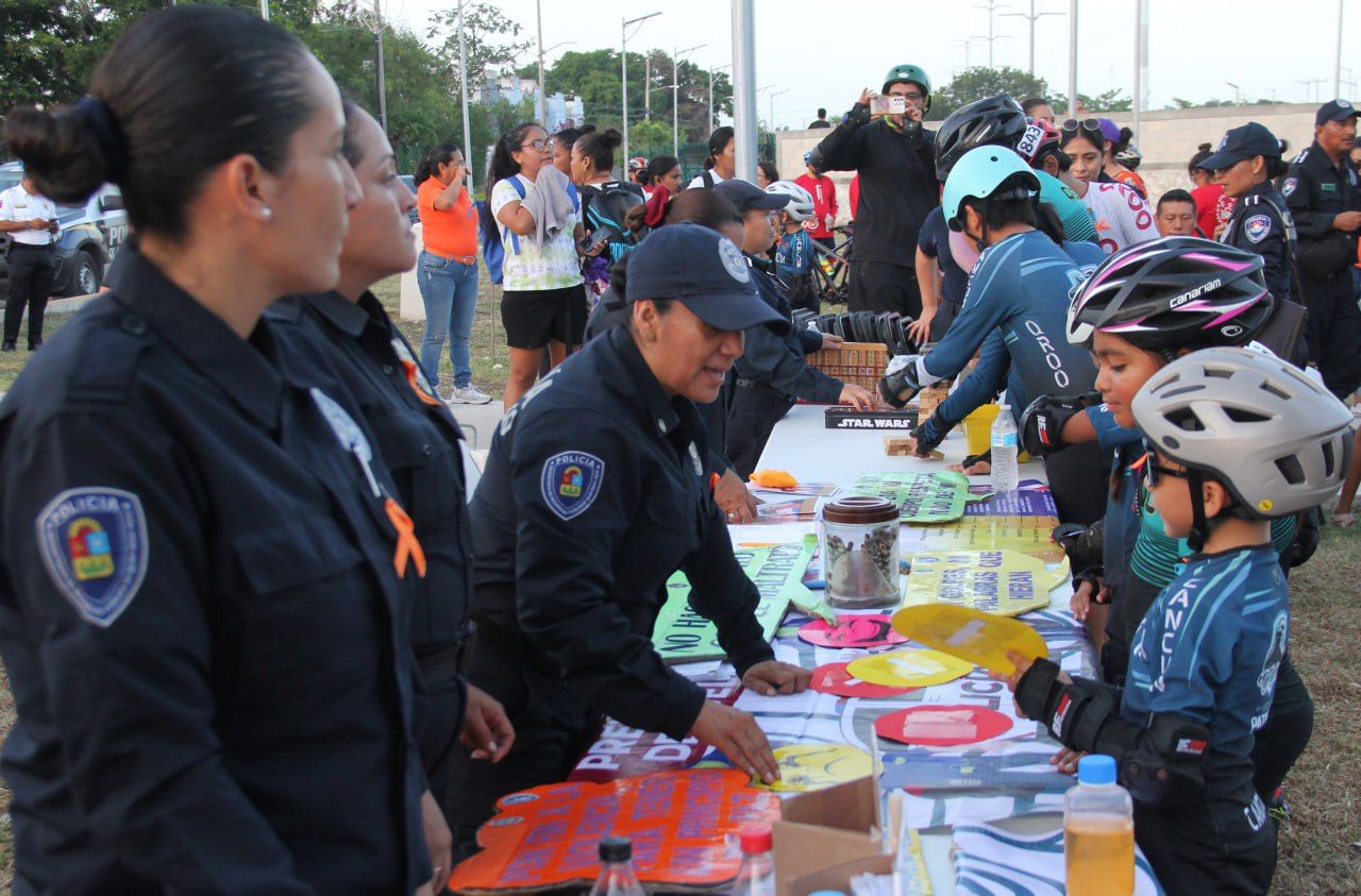 Para dar inicio con esta rodada en la Supermanzana 222, se realizó el tradicional banderazo de salida, en donde diferentes servidores públicos acompañaron en todo momento a los participantes que recorrieron la ciclopista del Parque de la Equidad, hasta llegar al cruce de avenida Chac Moll con avenida 20 de Noviembre, en donde fueron recibidos por una feria de servicios con módulos informativos y actividades lúdicas por parte de la Dirección General de Ecología, el Sistema para el Desarrollo Integral de la Familia (DIF), el Instituto Municipal de la Mujer (IMM), el Instituto Municipal Contra las Adicciones (IMCA), FARO y la Dirección de Prevención del Delito con la Participación Ciudadana, entre otros.