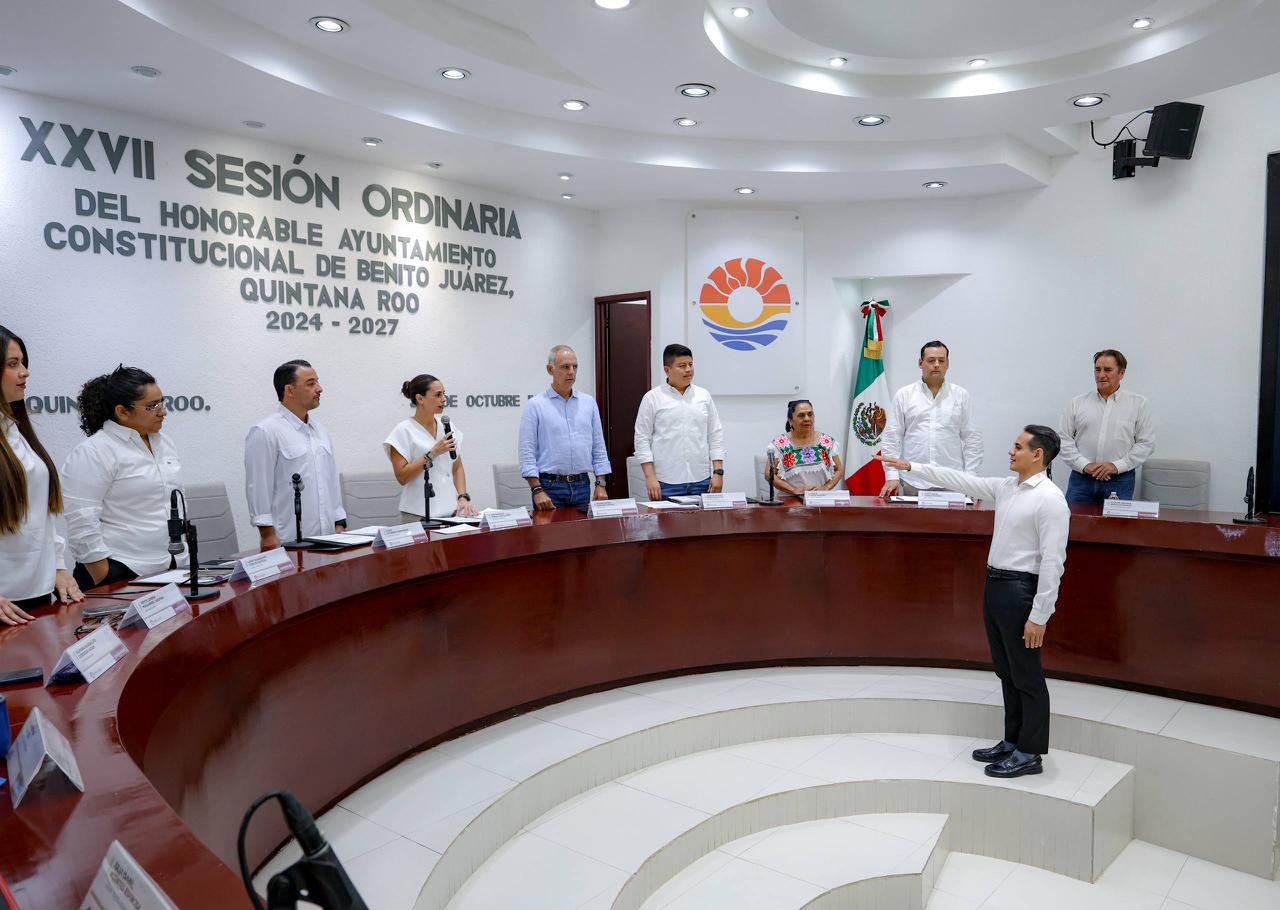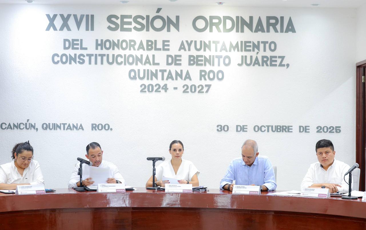 Cancún, Q. R., a 30 de octubre de 2025.- En el marco de la Vigésima Séptima Sesión Ordinaria, el Cabildo de Benito Juárez aprobó de forma unánime turnar a Comisiones Unidas la iniciativa de la Presidenta Municipal, Ana Paty Peralta, en la que se expide el Reglamento del Consejo de Paz y Justicia Cívica del Municipio de Benito Juárez, Quintana Roo, convirtiéndose en el primer municipio de la Entidad en aprobar los Comités de Paz, homologándose a la política nacional de construcción de paz impulsada por la Presidenta de México, Claudia Sheinbaum Pardo.