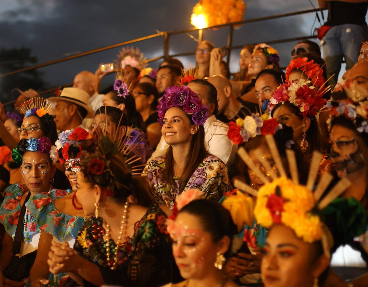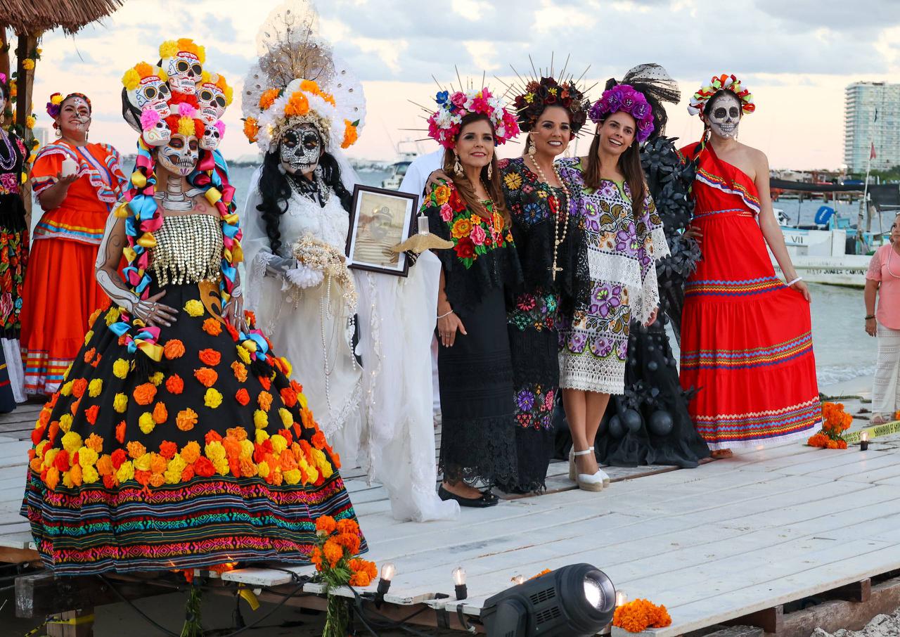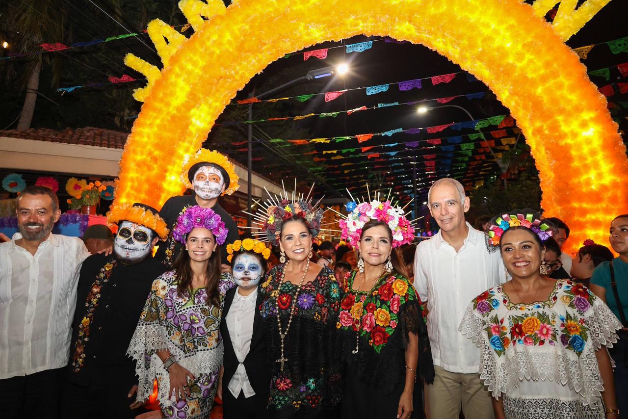 Vistiendo de un atuendo tradicional de la Península de Yucatán y una corona de flores, la Alcaldesa, la Gobernadora y la presidenta honoraria del Sistema DIF Estatal, Verónica Lezama Espinosa, caminaron en el clásico desfile que partió desde el muelle de la calle 45 hasta la entrada de esta histórica subdelegación, abarrotada de 120 stands de artesanos y empresarios, 50 gastronómicos y 51 altares, con un recorrido que transmitió un festín visual a través de calaveras danzantes, comparsas multicolores y figuras alegóricas que se mezclaron con la alegría de las familias, turistas y vecinos que disfrutaron al ritmo de la música mexicana.