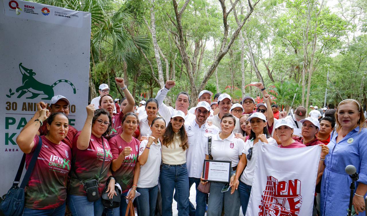 A su vez, el secretario de Ecología y Medio Ambiente en la entidad, Oscar Rébora Aguilera, en representación de la gobernadora Mara Lezama, celebró que el Parque Kabah pertenece a las 10 áreas naturales protegidas en Quintana Roo y sigue siendo un lugar verde de coexistencia, ya que se han observado más de 150 especies como el coatí que precisamente es la imagen conmemorativa de su 30 aniversario.