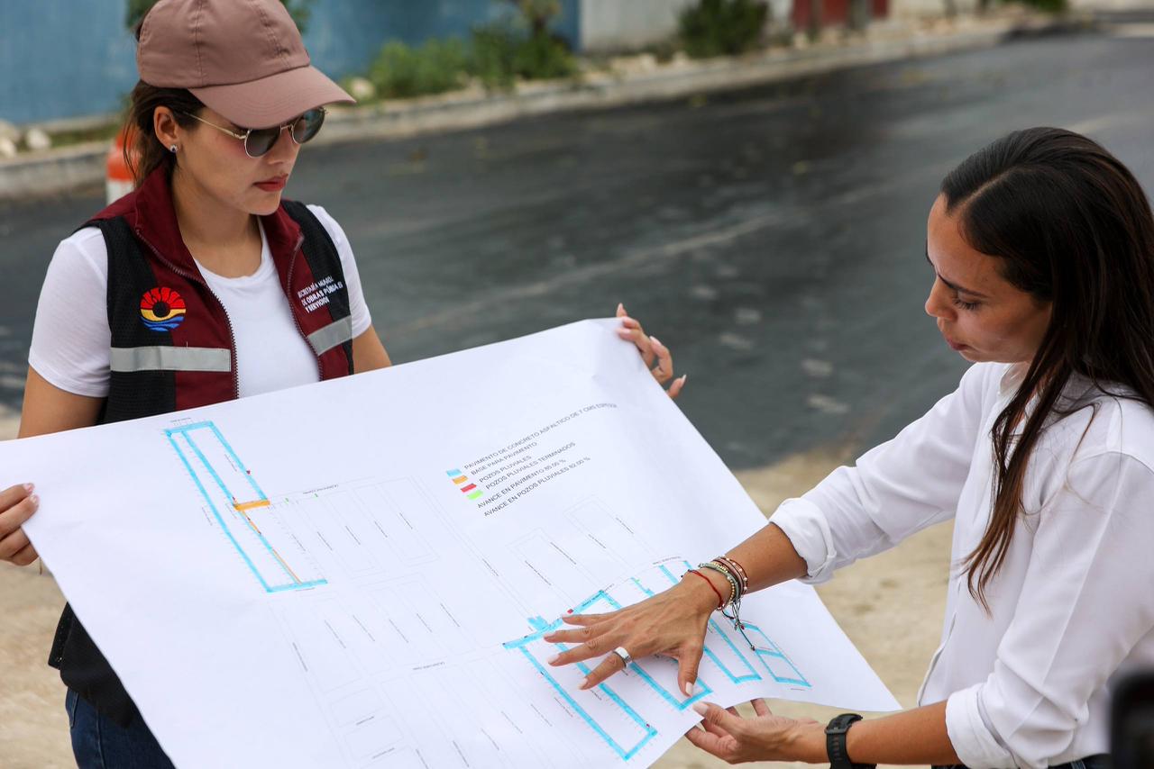 En el lugar, acompañada por la secretaria de Obras Públicas y Servicios, Samantha Hernández Cardeña, la Alcaldesa explicó que la obra contempla la aplicación de carpeta asfáltica de cinco centímetros de espesor en un tramo y de siete centímetros en otro, además de la instalación de un reductor de velocidad tipo circular y un paso peatonal de desarrollo transversal.
