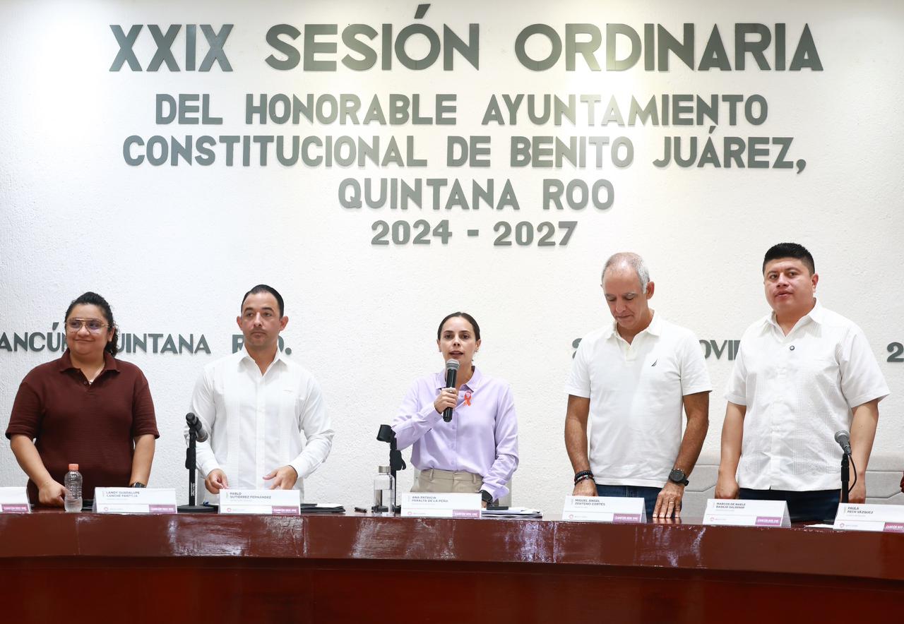 Cancún, Q. R., a 27 de noviembre de 2025.- En el marco de la Vigésimo Novena Sesión Ordinaria, encabezada por la Presidenta Municipal, Ana Paty Peralta, el Cabildo de Benito Juárez aprobó por unanimidad el porcentaje de descuento que como subsidio fiscal será aplicado para el pago del impuesto predial correspondiente al ejercicio fiscal 2026.