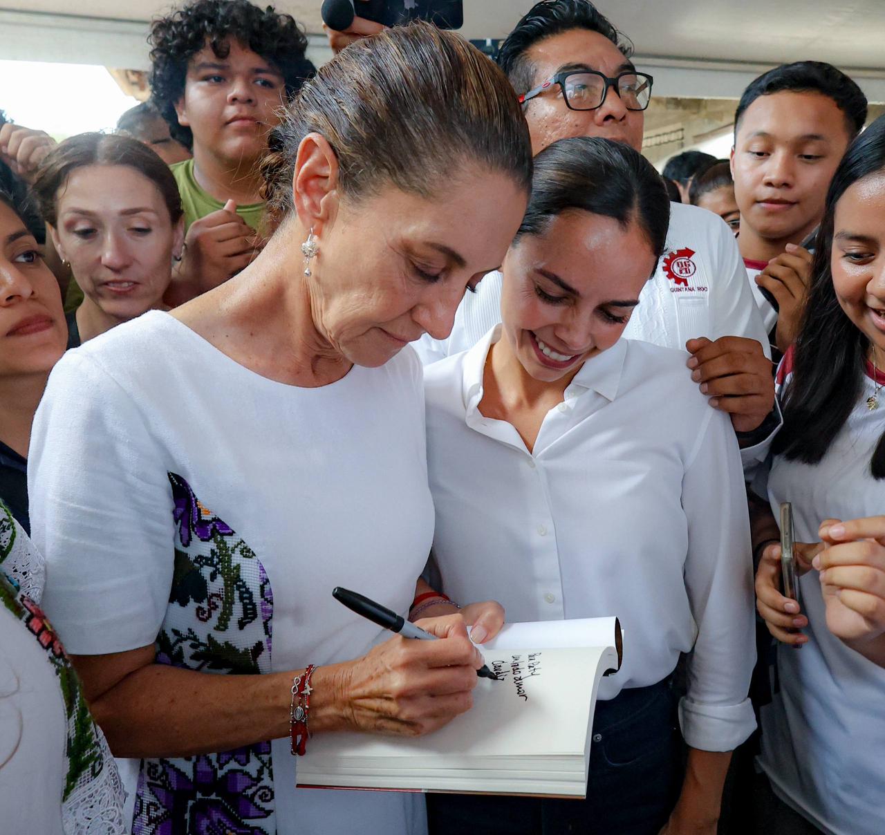 · De manos de la Presidenta de México, Claudia Sheinbaum Pardo, estudiantes cancunenses reciben las primeras tarjetas en la Entidad