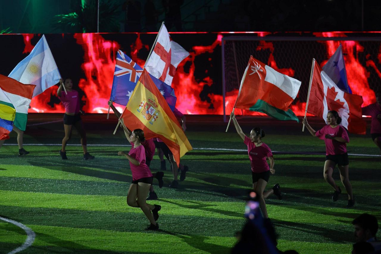 El evento también contó con honores al Lábaro Patrio con la bandera monumental como protagonista, un espectáculo artístico con puro talento cancunense, así como un desfile de banderas, show de láser y el mensaje inaugural del presidente de la Federación Internacional de Socca, David Leone.