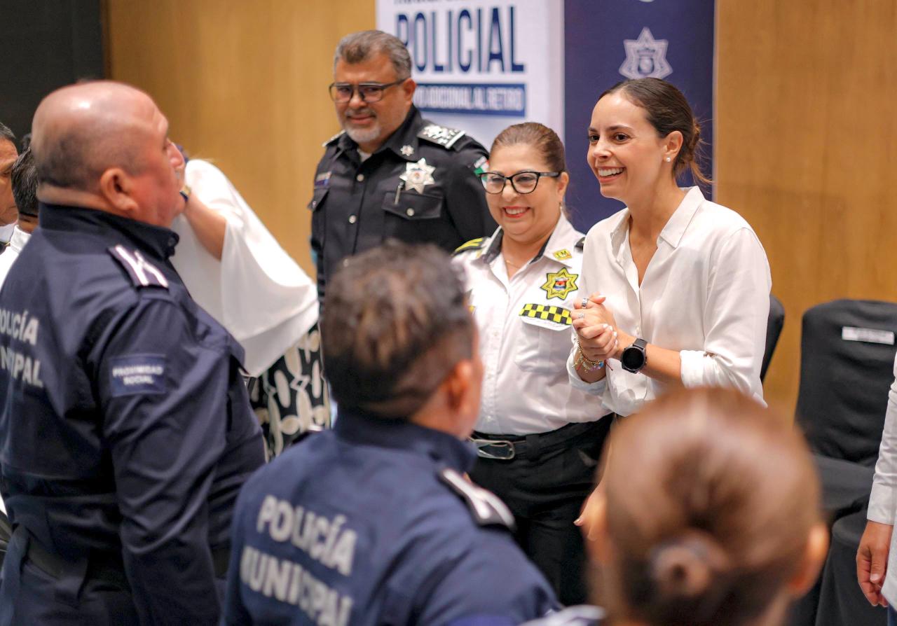 Presidenta Municipal, Ana Paty Peralta, al entregar 20 estímulos para elementos