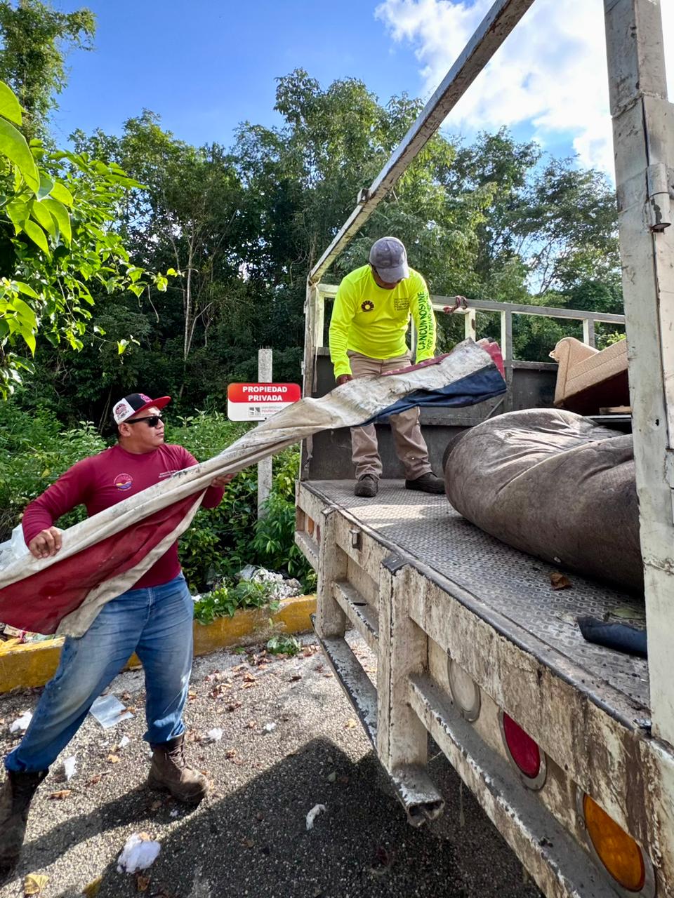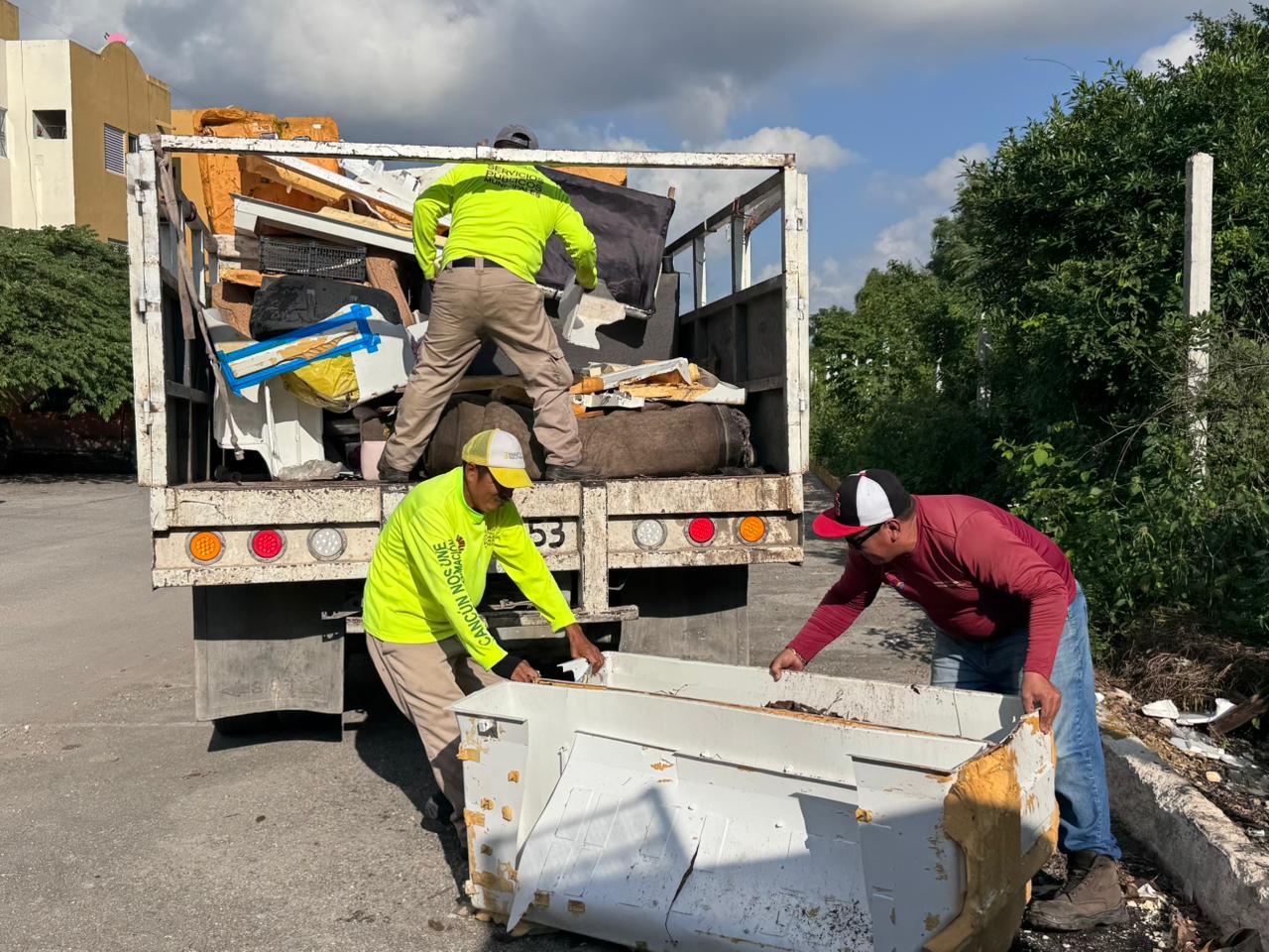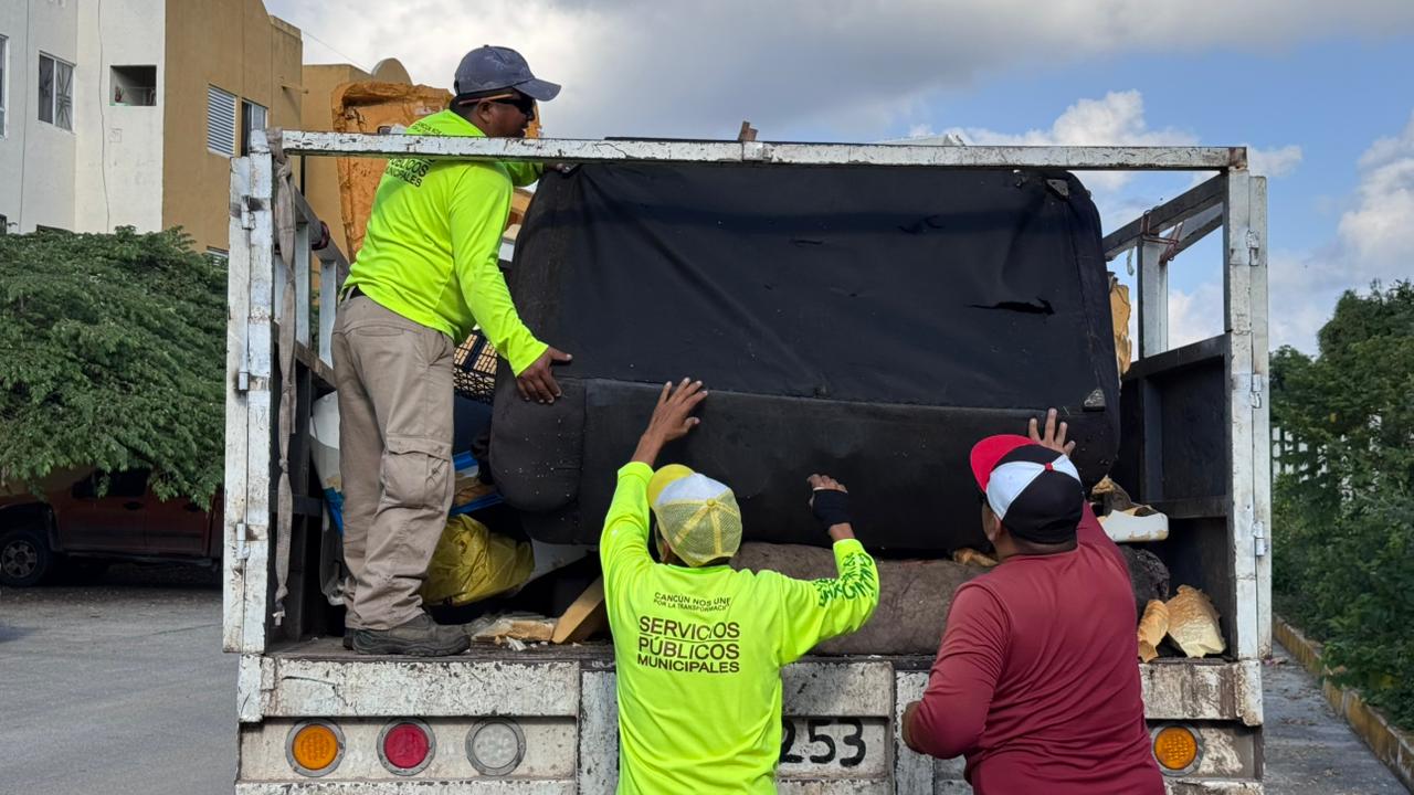 Cancún, Q. R., a 04 de diciembre de 2025.- En atención a un reporte que mencionó la gobernadora, Mara Lezama, en su programa “La Voz del Pueblo”, el Ayuntamiento de Benito Juárez, encabezado por la Presidenta Municipal, Ana Paty Peralta, a través de la Dirección General de Servicios Públicos, brindó atención inmediata con los basureros a las y los vecinos colindantes de los fraccionamientos “Isla Madeira” y “Lealtades”, quienes reportaron la acumulación de inmuebles que representan un foco de infección y sobre todo, dan mala imagen a la ciudad.