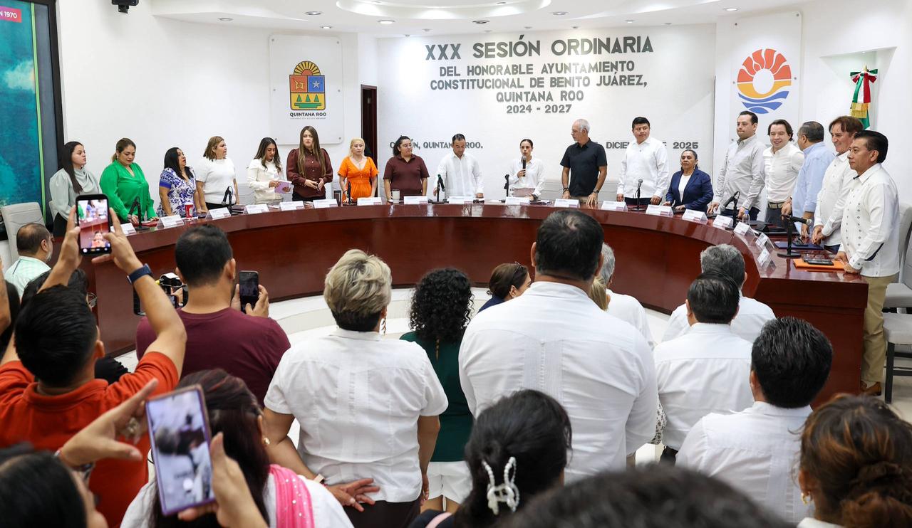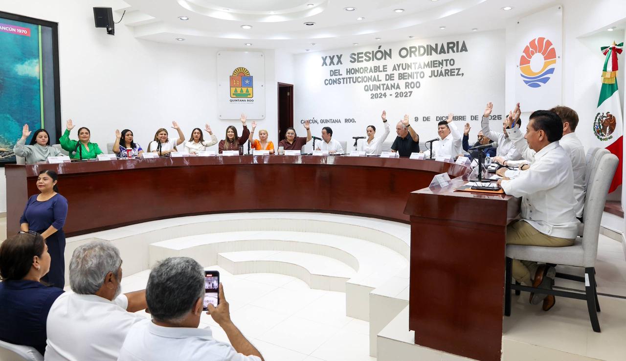 Cancún, Q. R., a 09 de diciembre de 2025.- Al celebrarse la Trigésima Sesión Ordinaria, encabezada por la Presidenta Municipal, Ana Paty Peralta, el Cabildo de Benito Juárez aprobó por unanimidad instituir dentro del calendario cívico del municipio el primer miércoles de mayo de cada año como el “Día Municipal del Tianguista”, a efecto de reconocer esta actividad como un pilar de la economía circular, que genera autoempleo y abasto para la población.