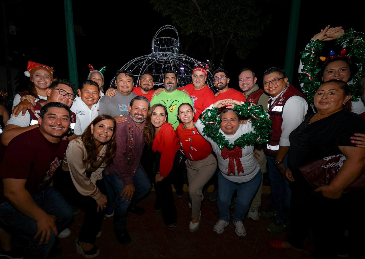 la Gobernadora Mara Lezama iluminaron la villa navideña de la Supermanzana 95,
