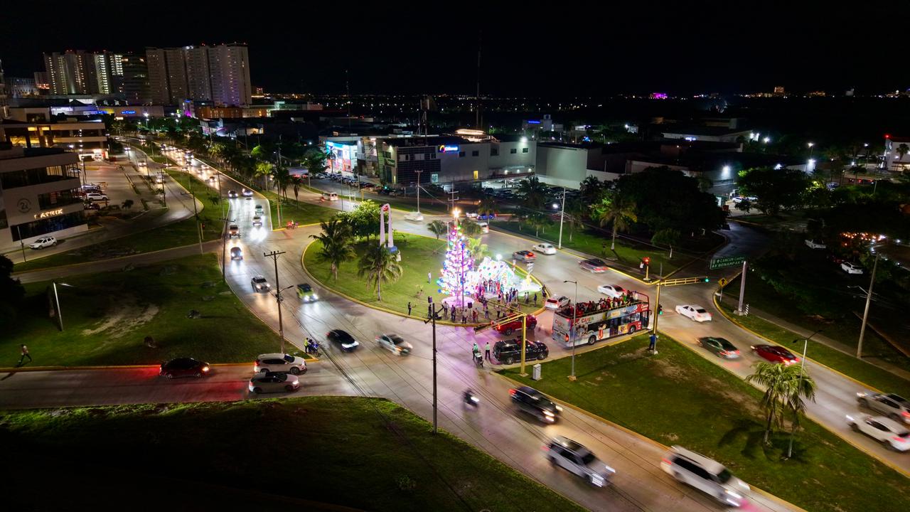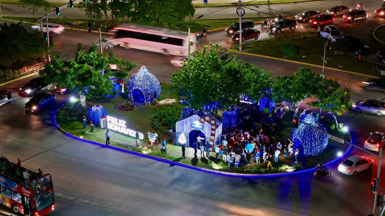 “Avenida Kabah” y Avenida Nichupté, la cual fue adornada con regalos gigantes,