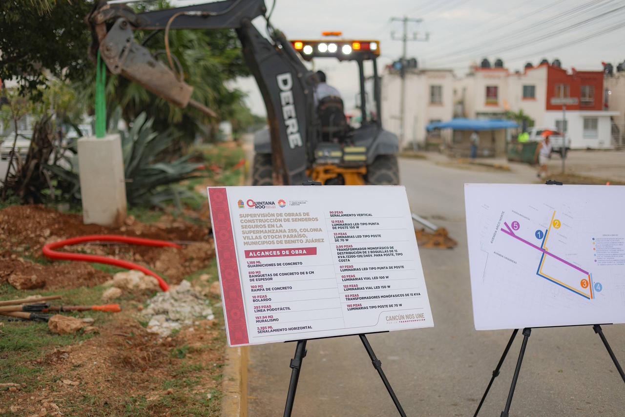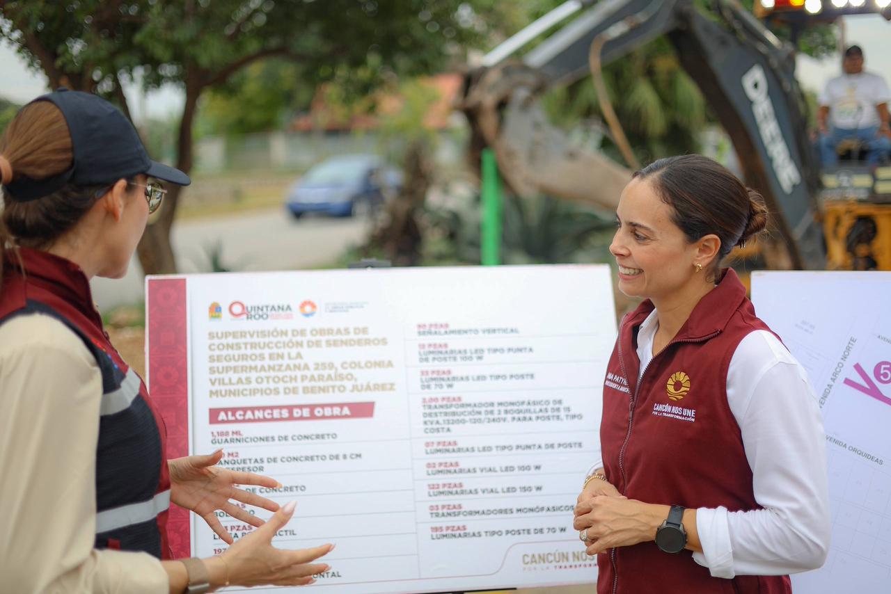 Cancún, Q. R., a 02 de enero de 2026.- La Presidenta Municipal, Ana Paty Peralta, realizó un recorrido de supervisión de la obra de construcción del Sendero Seguro en la Supermanzana 259, Colonia Villas Otoch Paraíso, como parte de las acciones para mejorar el entorno urbano de esta zona.