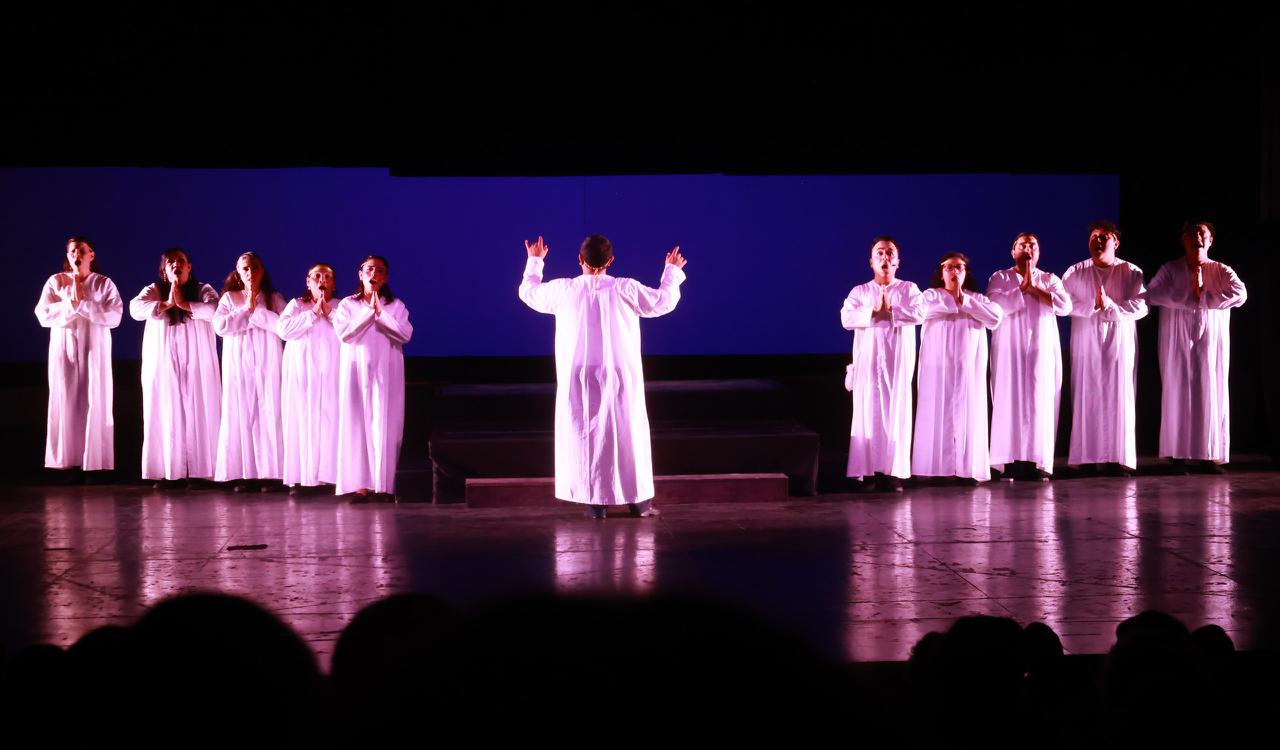 Cancún, Q. R., a 04 de enero de 2026.- Con un despliegue en el escenario de más de 40 personas, el Ayuntamiento de Benito Juárez, a través del Instituto de la Cultura y las Artes de Benito Juárez, promueve las artes escénicas y las tradiciones mexicanas con la puesta “El portal de Belén: La Pastorela Interdimensional”, que se presenta en el Teatro de la Ciudad, en esta temporada de fiestas.