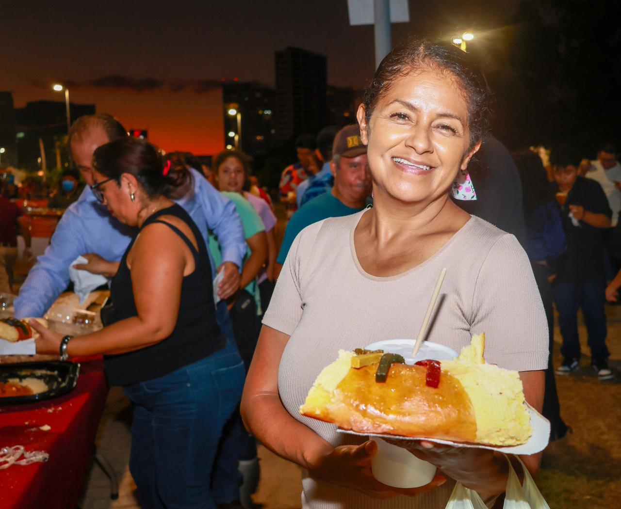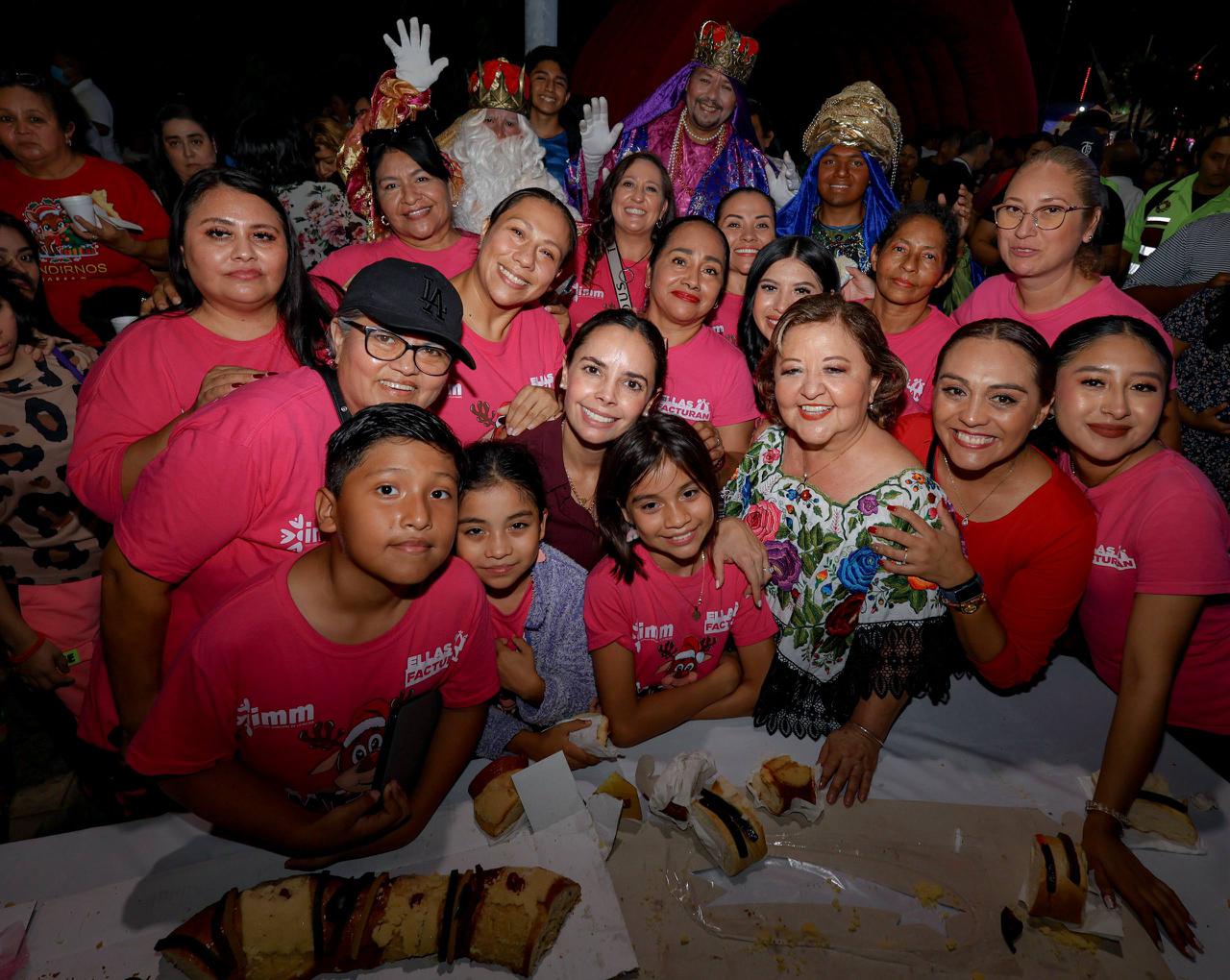 Cancún, Q. R., a 06 de enero de 2026.- En un ambiente de alegría y festividad, la Presidenta Municipal, Ana Paty Peralta, compartió con cientos de cancunenses y visitantes la Rosca de Reyes más grande de la ciudad, de 750 metros de longitud, superando así a la de 2025, que midió 550 metros.