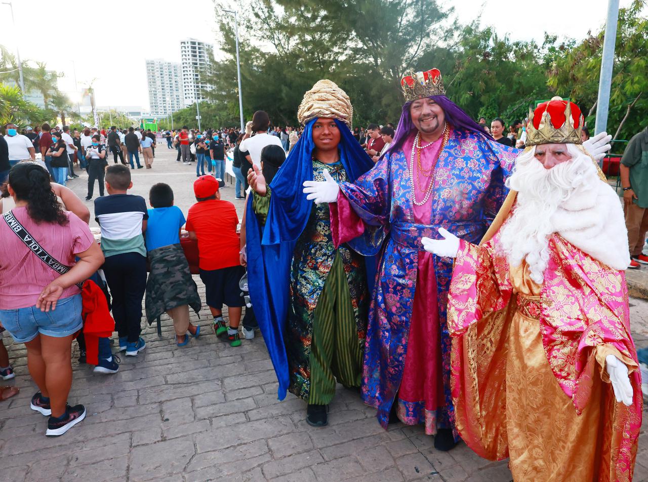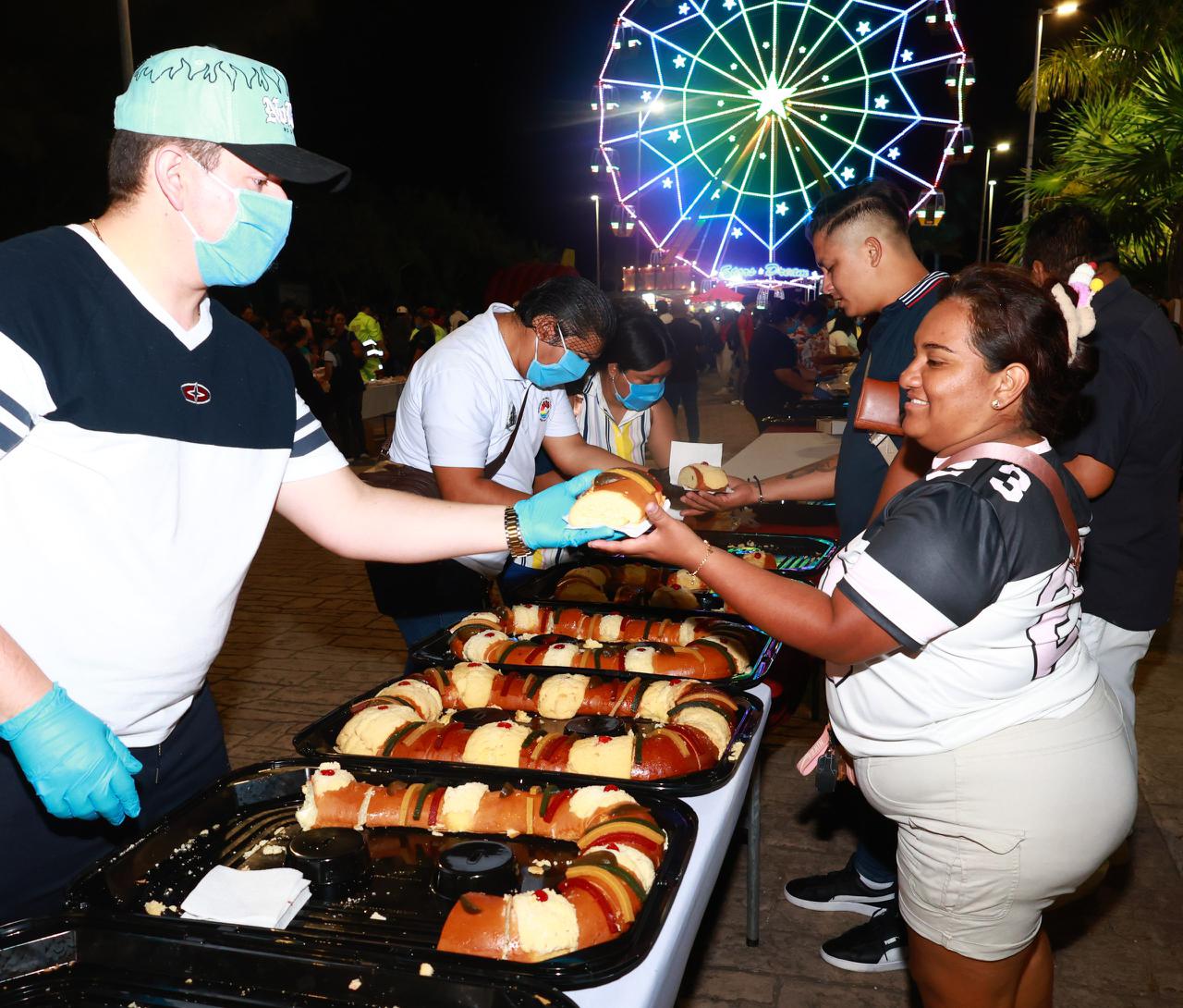 Tras cumplir con el protocolo, las autoridades estatales y municipales realizaron el tradicional corte y distribuyeron rebanadas de este postre entre personas de todas las edades, quienes disfrutaron y compartieron. Además, los Reyes Magos hicieron su aparición con vistosos trajes y coronas doradas, emocionando a las niñas y niños que aprovecharon para tomarse la foto del recuerdo.