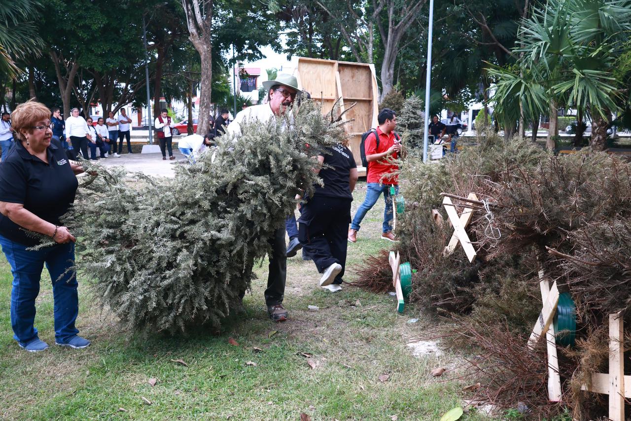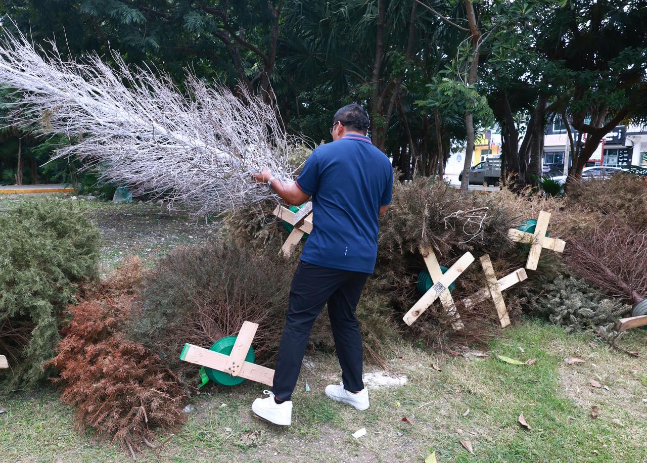 En la avenida La Luna con avenida Las Torres, uno de los sitios de depósito, el titular de esta dependencia exhortó a los ciudadanos a dejar los pinos sin luces ni adornos para que sea fácil su proceso de trituración, ya que el material que se obtenga se reutiliza como composta para los programas permanentes de reforestación.