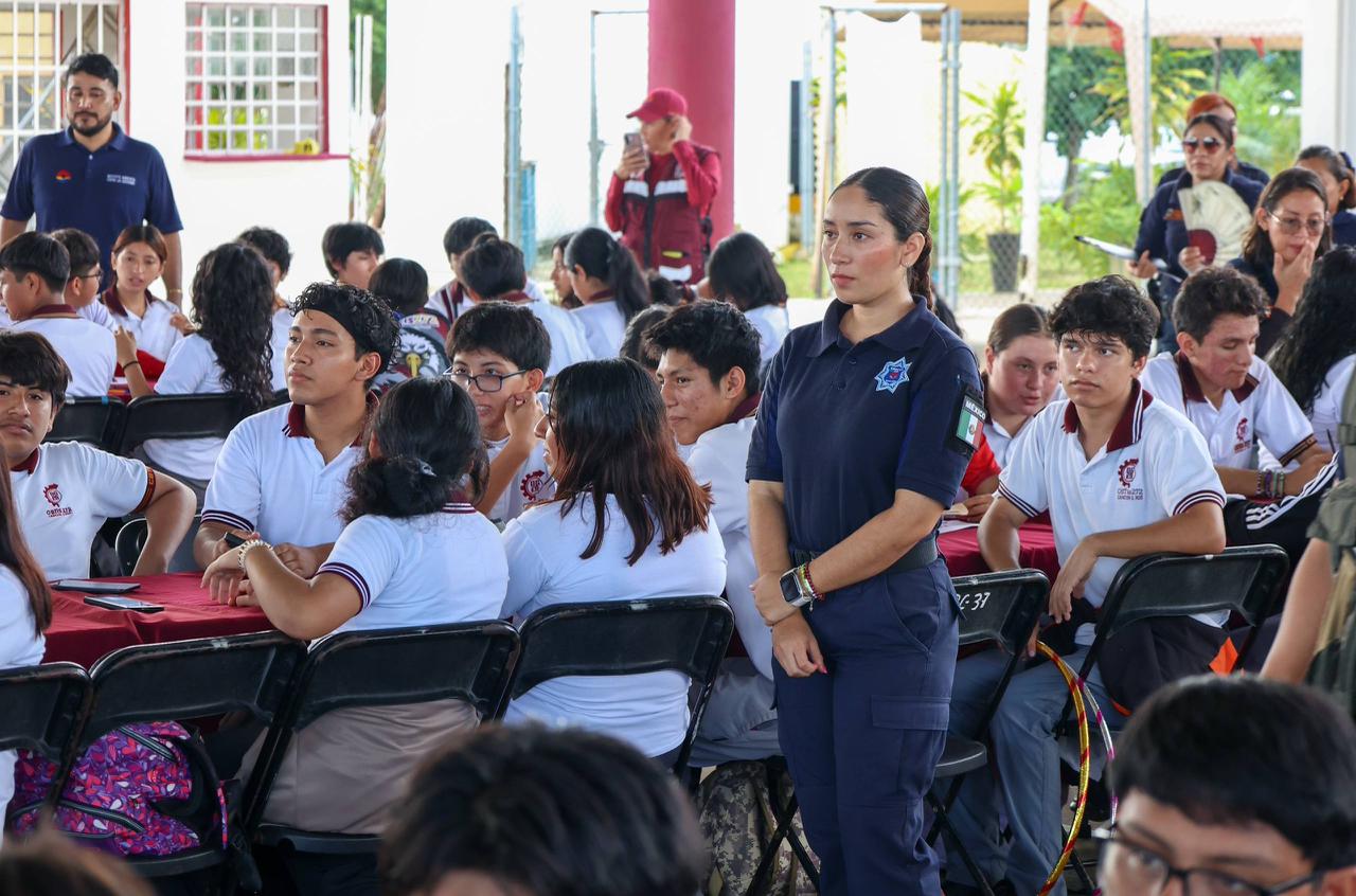niños y niñas asistieron a las pláticas de seguridad impartidas por los cuerpos