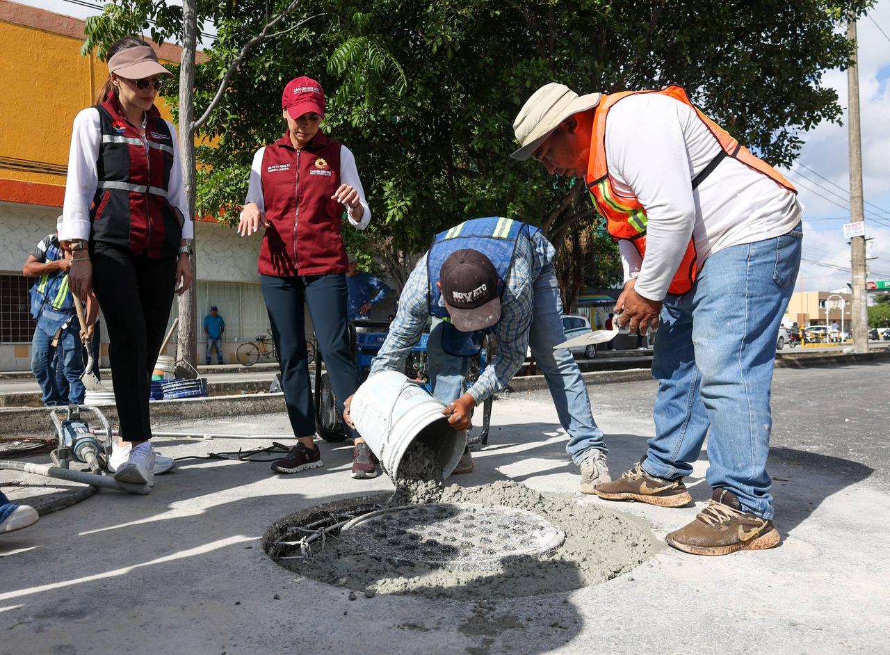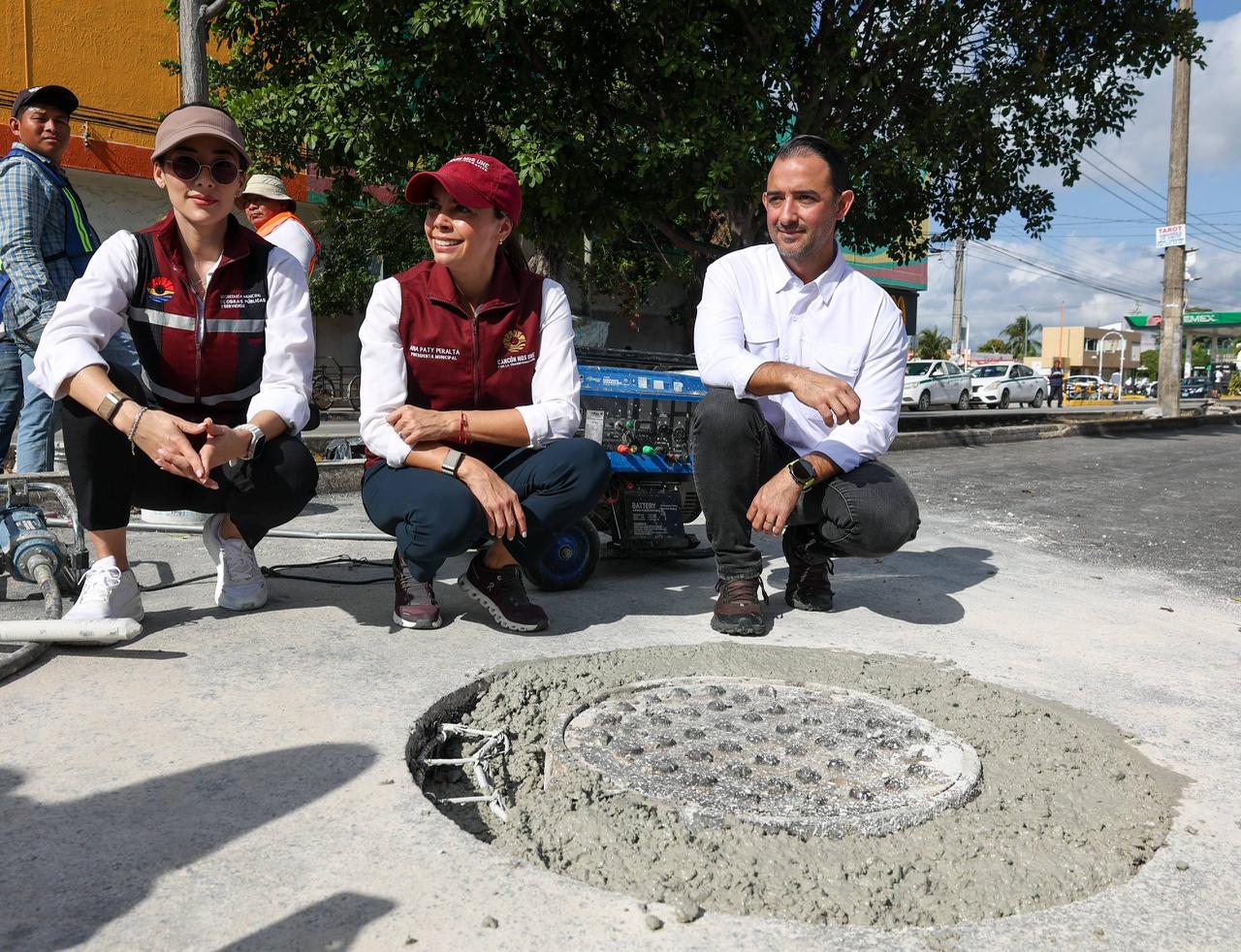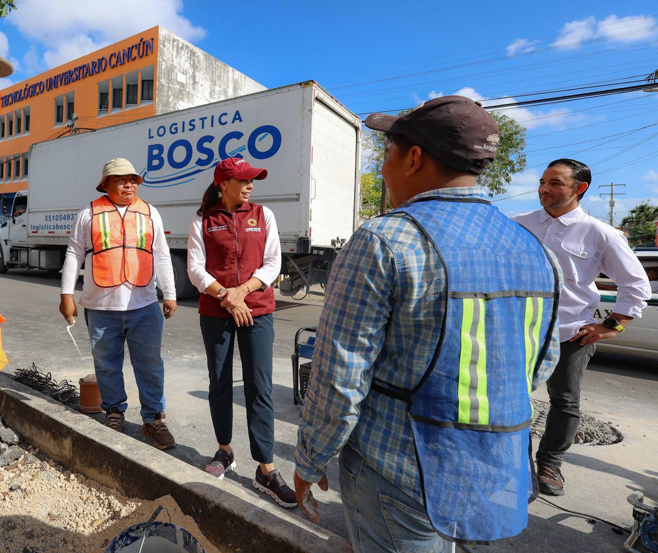 Acompañada por el secretario general del Ayuntamiento, Pablo Gutiérrez Fernández y la secretaria municipal de Obras Públicas y Servicios, Samantha Hernández Cardeña, la Alcaldesa aseguró que están en constante supervisión para que las obras se realicen con calidad en Cancún, comprobando que se concluyan de manera correcta y permitan a los cancunenses disfrutar de una ciudad moderna.