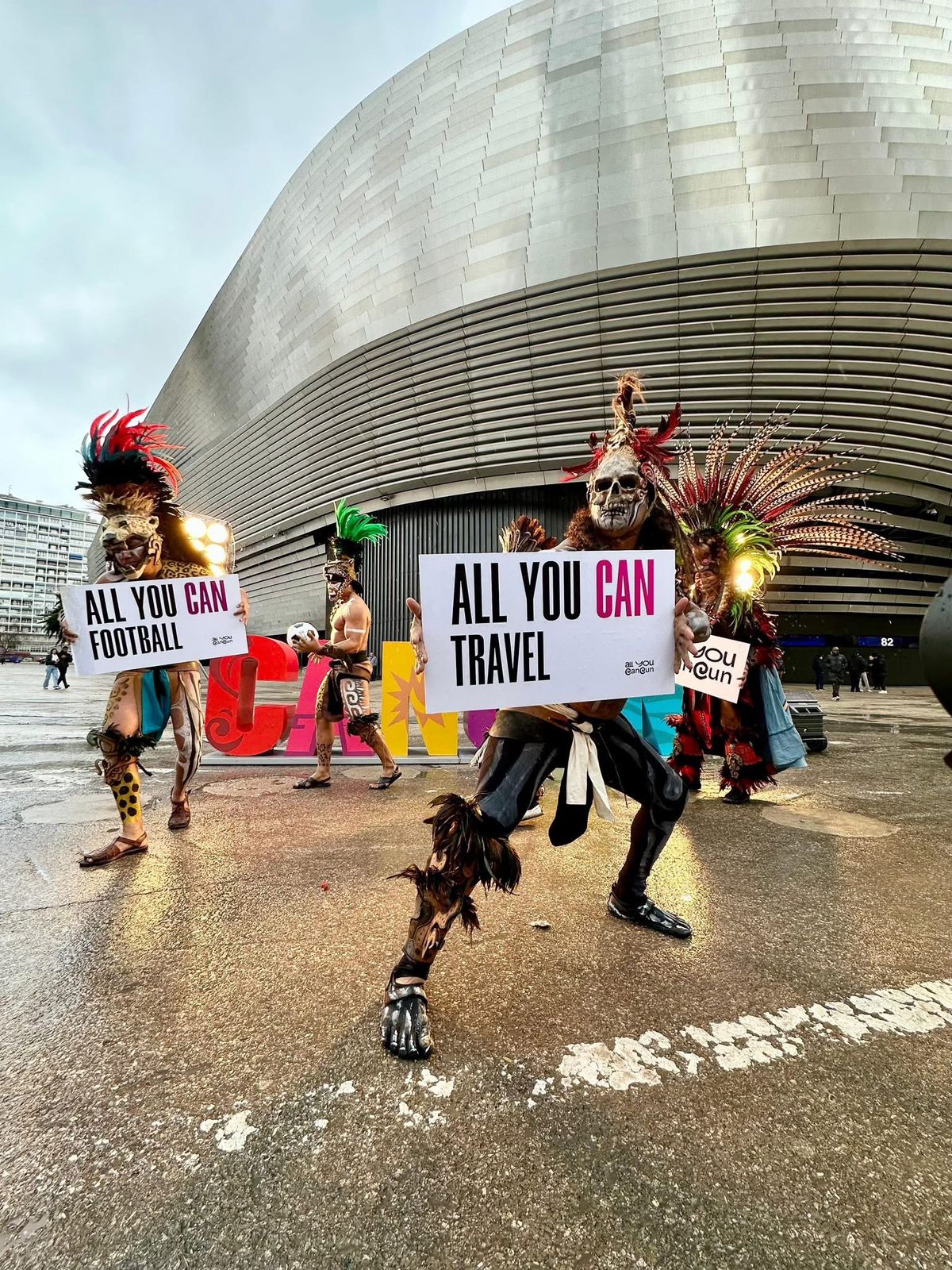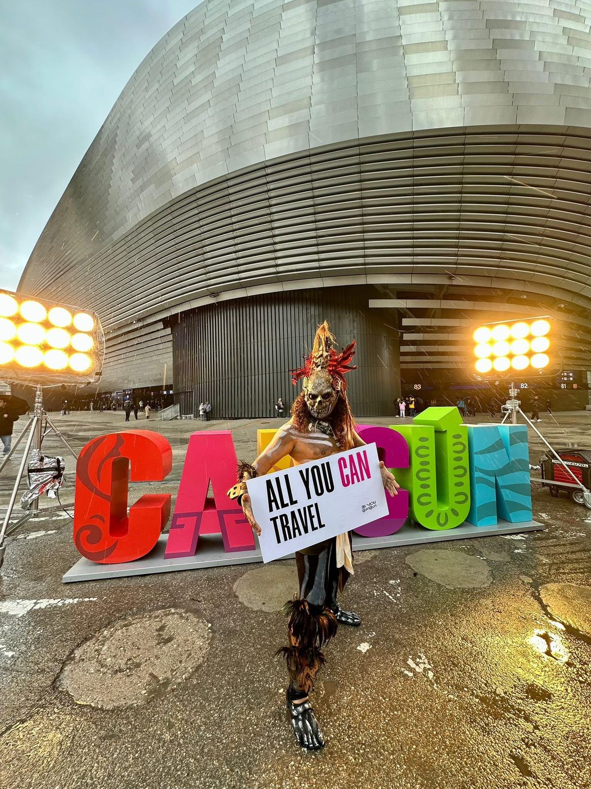 Madrid, España, a 20 de enero de 2026.- Como parte de la campaña promocional del Ayuntamiento de Benito Juárez en el marco de la Feria Internacional de Turismo (FITUR) 2026, por instrucción de la Presidenta Municipal, se inició una campaña de street marketing en el exterior del Estadio Santiago Bernabéu, en Madrid, consistente en llevar la marca Cancún y la colocación del parador fotográfico con las coloridas letras del nombre de la ciudad para atraer más visitantes.