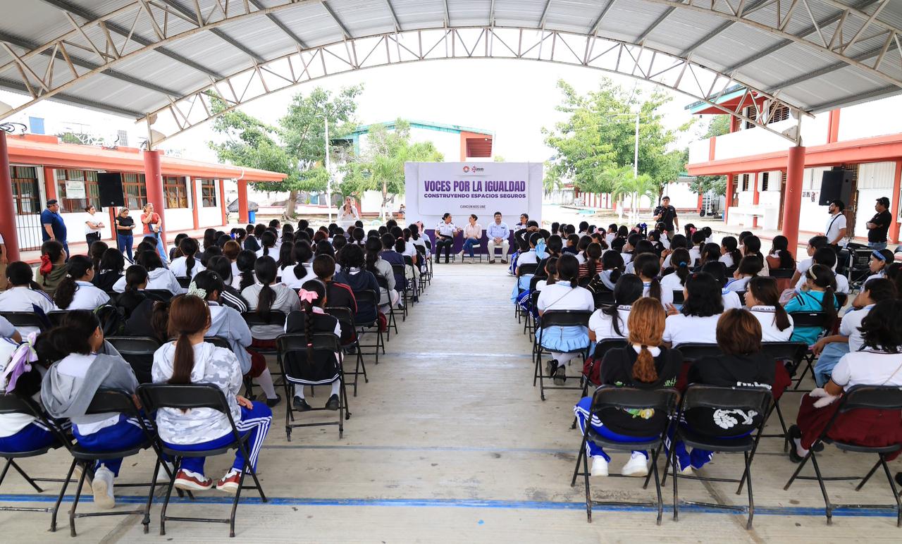 Cancún, Q. R., a 26 de enero de 2026.- Para continuar fomentando la participación de las mujeres y avanzar hacia una ciudad equitativa y libre de violencia, la Presidenta Municipal, Ana Paty Peralta, llevó a la Escuela Secundaria General No. 30 “Juan de la Barrera” el foro “Voces por la Igualdad, Construyendo Espacios Seguros”, con el que se instruyó y atendió a más de 150 alumnas.