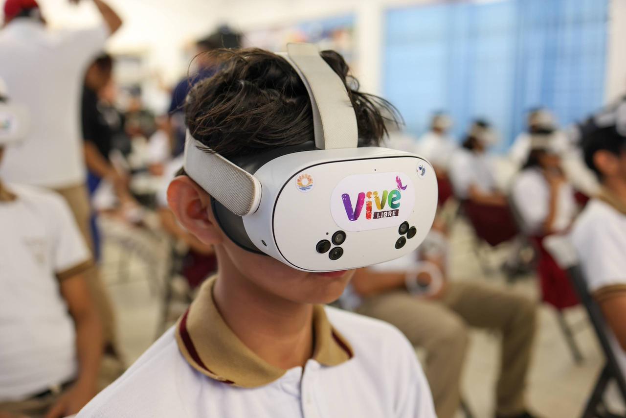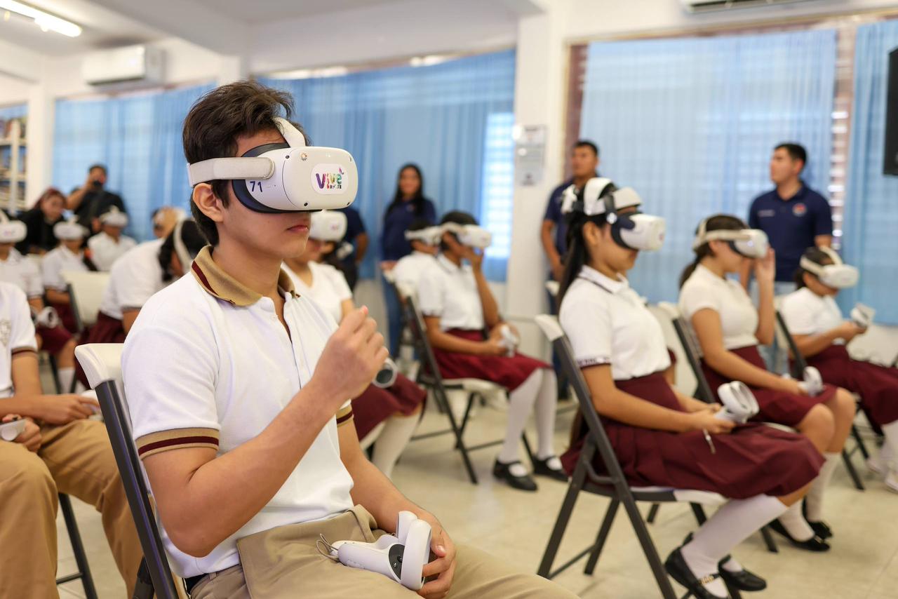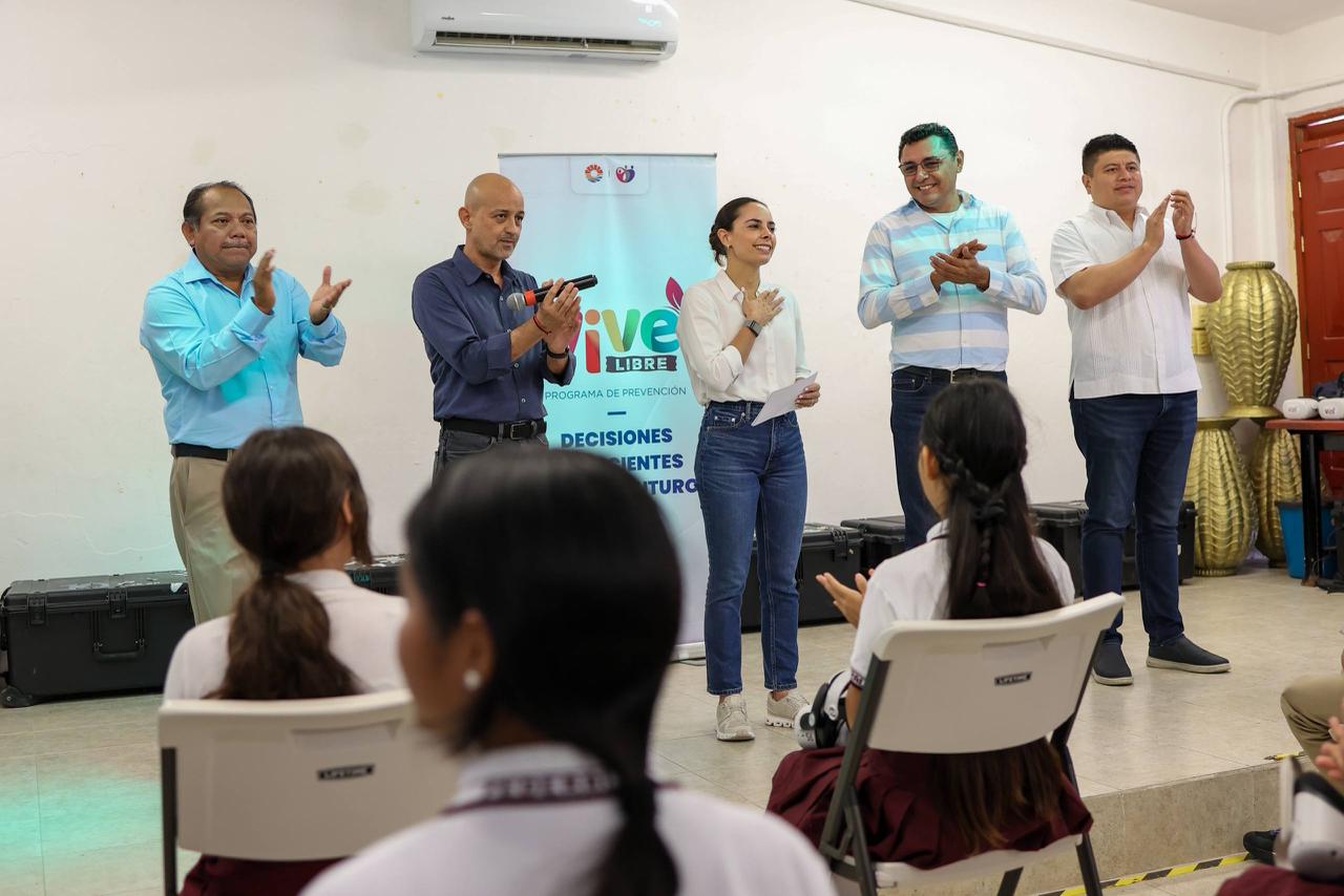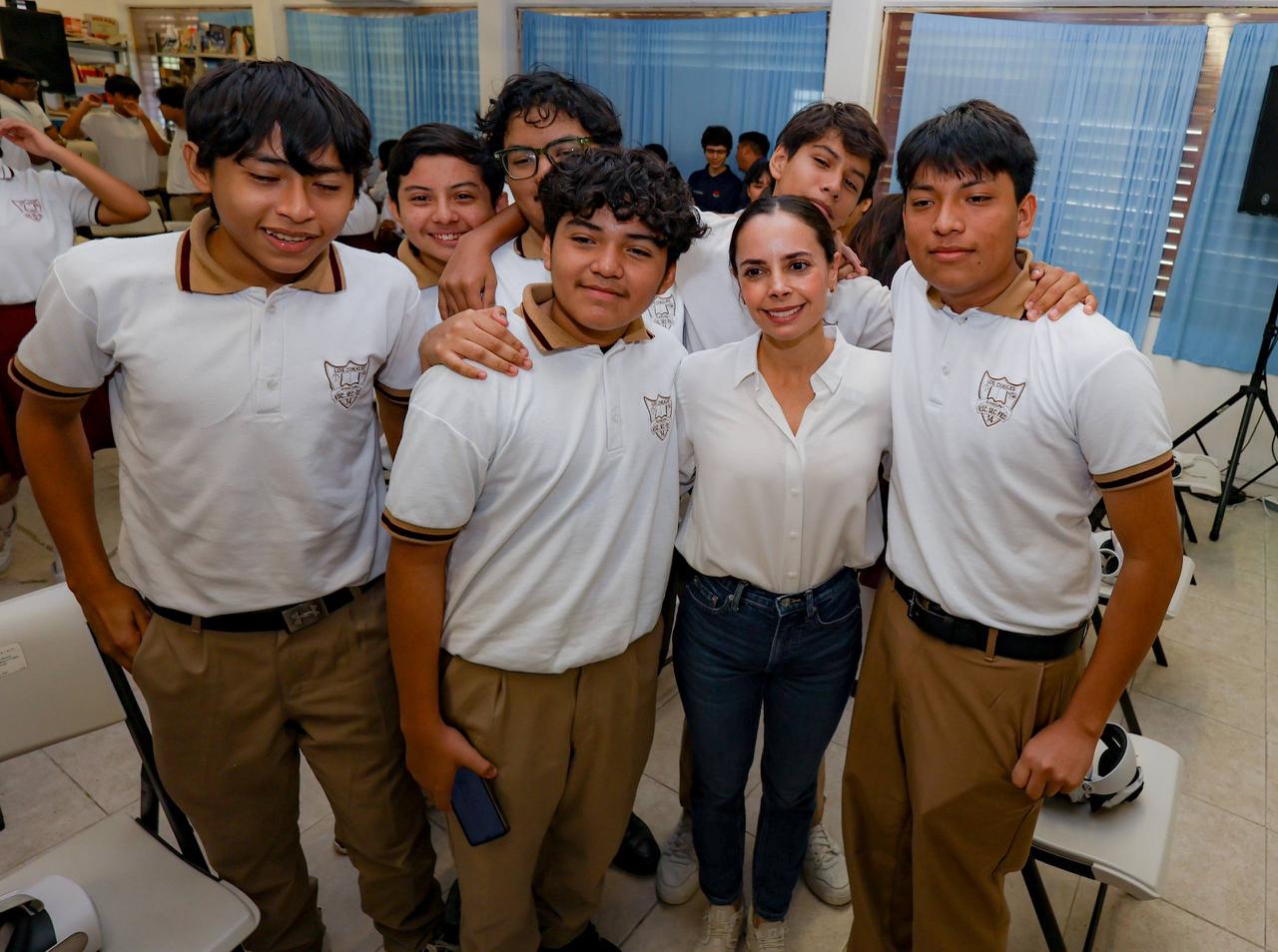 Cancún, Q. R., a 27 de enero de 2026.- “La secundaria es de las mejores etapas de su vida pero también es la más complicada, todos somos seres humanos y todos nos podemos equivocar, aquí es cuestión de saber qué hacer cuando uno se equivoca, regresar y tomar una buena decisión”, señaló la Presidenta Municipal, Ana Paty Peralta, al llevar el programa “Vive libre”, experiencia de Realidad Virtual a 553 estudiantes de la Escuela Secundaria General No. 14 “Los Corales”.