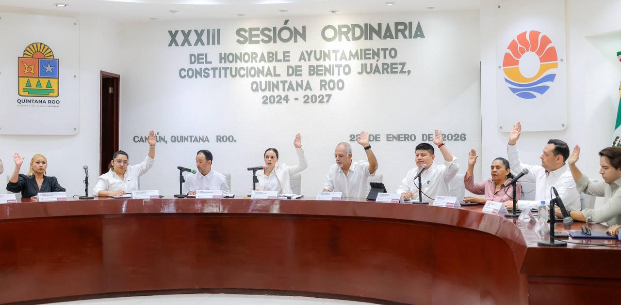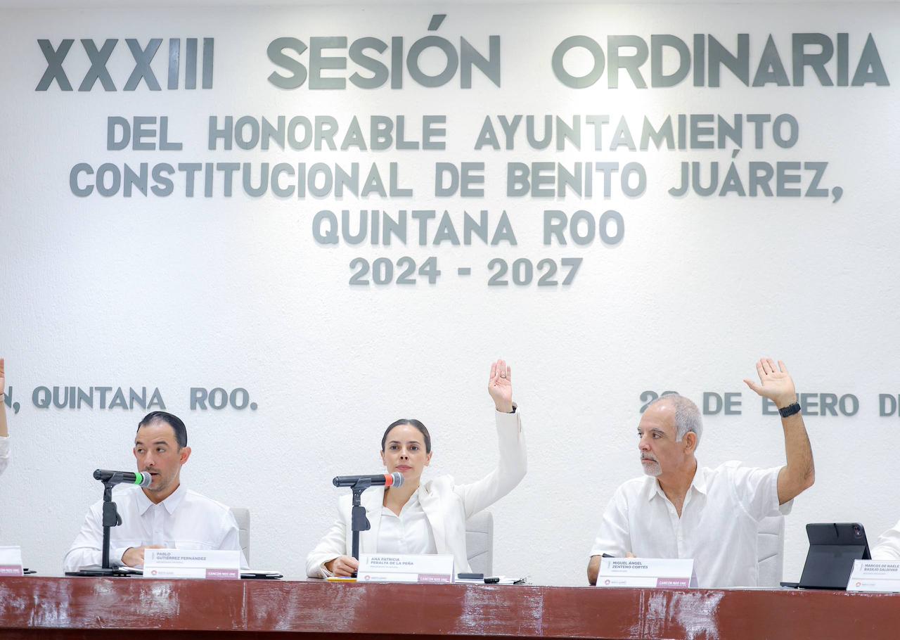 Cancún, Q. R., a 29 de enero de 2026.- En el marco de la Trigésima Tercera Sesión Ordinaria, encabezada por la Presidenta Municipal, Ana Paty Peralta, el Cabildo de Benito Juárez autorizó por unanimidad turnar a comisiones la iniciativa de reformas a varios ordenamientos municipales para que los comités vecinales asuman las funciones que corresponden a los denominados comités de paz, que precisamente estarán enfocados en prevenir la violencia, reconstruir el tejido social y promover la cultura de la paz en la ciudad.