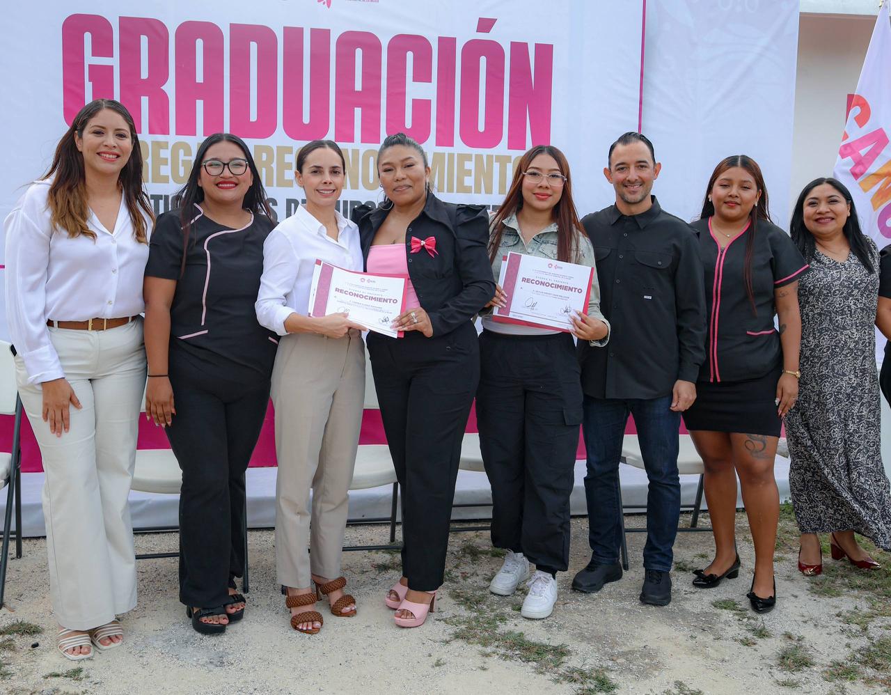 Cancún, Q. R., a 30 de enero de 2026.- Con gran orgullo, la Presidenta Municipal, Ana Paty Peralta, encabezó la ceremonia de graduación y entrega de 120 reconocimientos a 64 mujeres y hombres quienes culminaron su formación en los cursos y talleres de autoempleo impartidos por el Instituto Municipal de la Mujer (IMM), reafirmando su compromiso con el empoderamiento femenino, su independencia económica y la construcción de una ciudad más justa.
