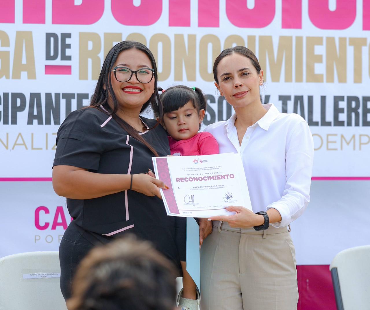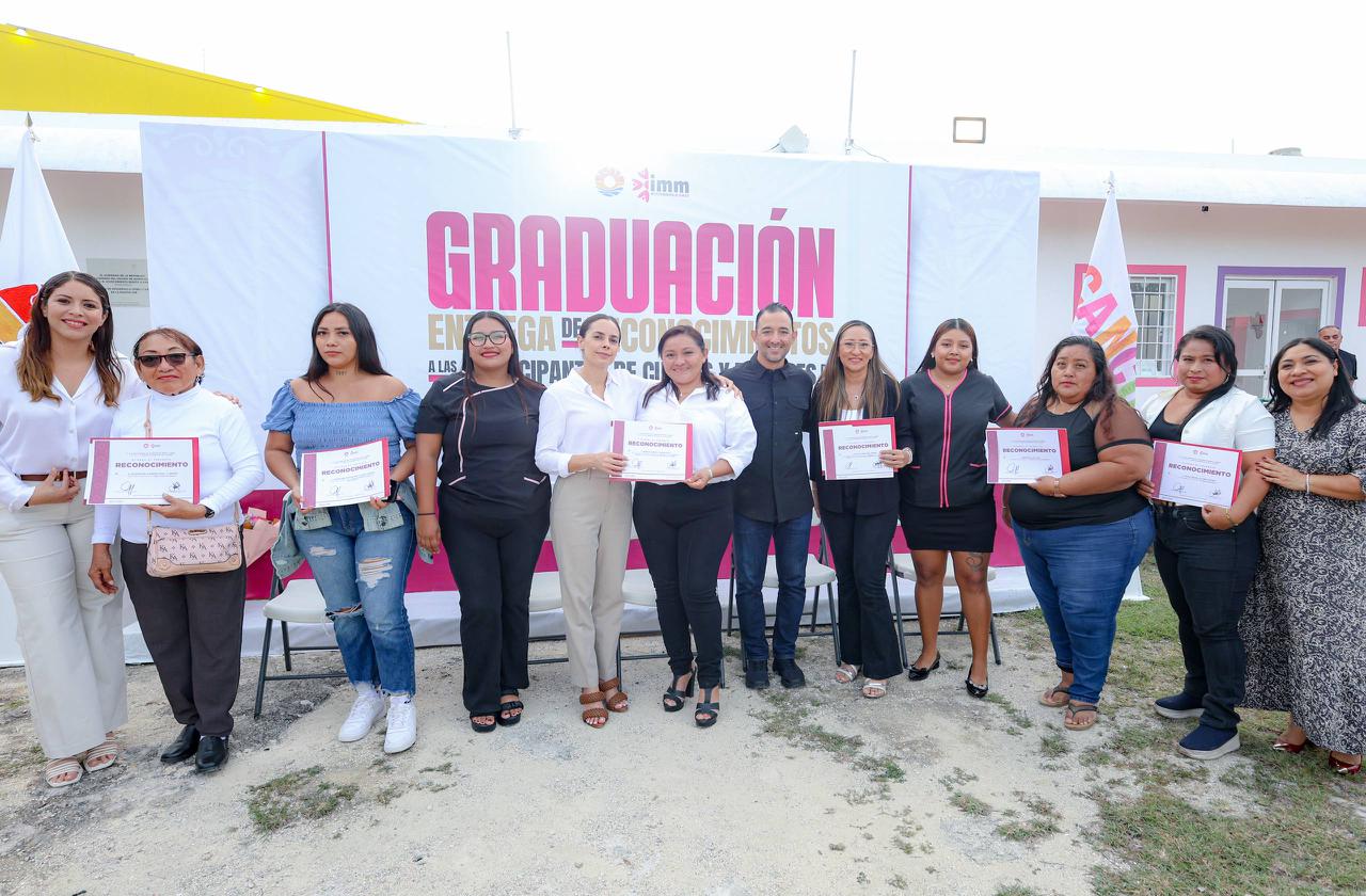 Por su parte, la titular del IMM, Miroslava Reguera Martínez, informó que en esta edición se entregaron 120 reconocimientos a mujeres que concluyeron exitosamente su capacitación impartida de julio a octubre del 2025.