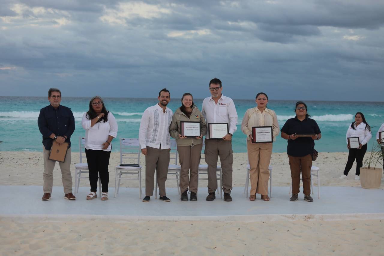 Finalmente, al cierre del evento se realizó la entrega simbólica de 10 reconocimientos, de un total de 120 otorgados, a representantes de dependencias municipales, la Universidad del Caribe y sectores hotelero y turístico, en agradecimiento a su compromiso con la protección de las tortugas marinas.