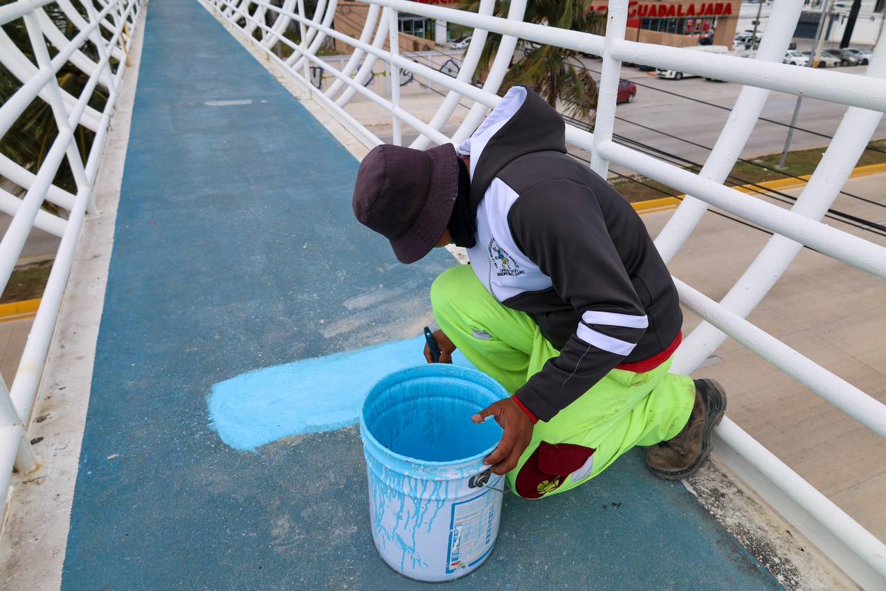 trabajos de mantenimiento al puente peatonal ubicado frente al Centro de