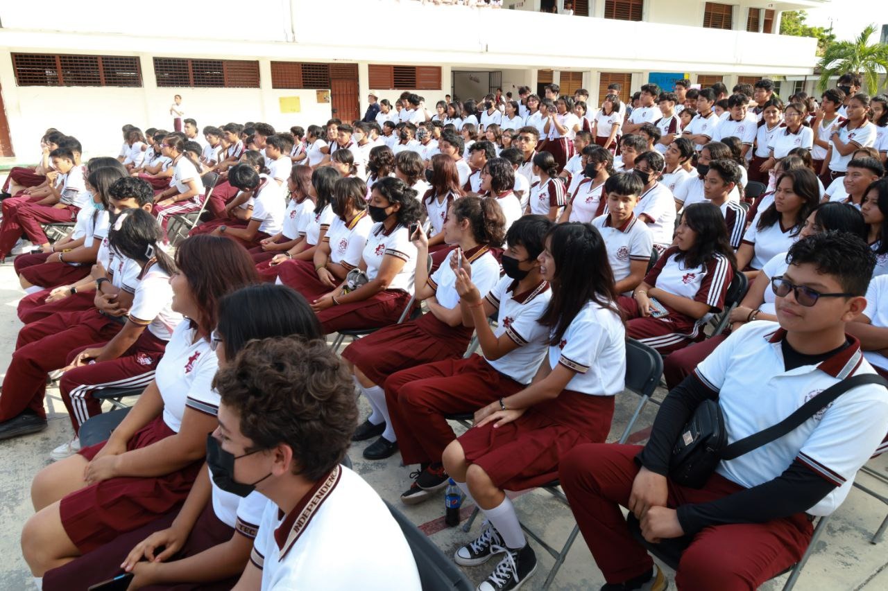 Cancún, Q. R., a 23 de mayo de 2023.- En una convivencia entre autoridades, jóvenes estudiantes y docentes, el Instituto de la Cultura y las Artes en Benito Juárez, llevó a cabo el programa “Cuentacuentos” en la Escuela Secundaria Técnica No. 32 "Independencia de México" en la Supermanzana 200, donde la Presidenta Municipal, Ana Paty Peralta, reafirmó su compromiso por el sano desarrollo de niñas, niños y adolescentes cancunenses.