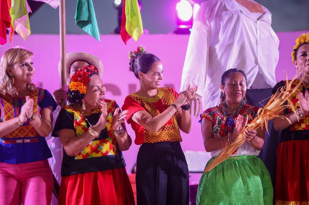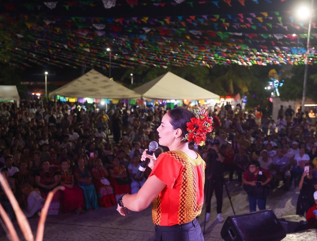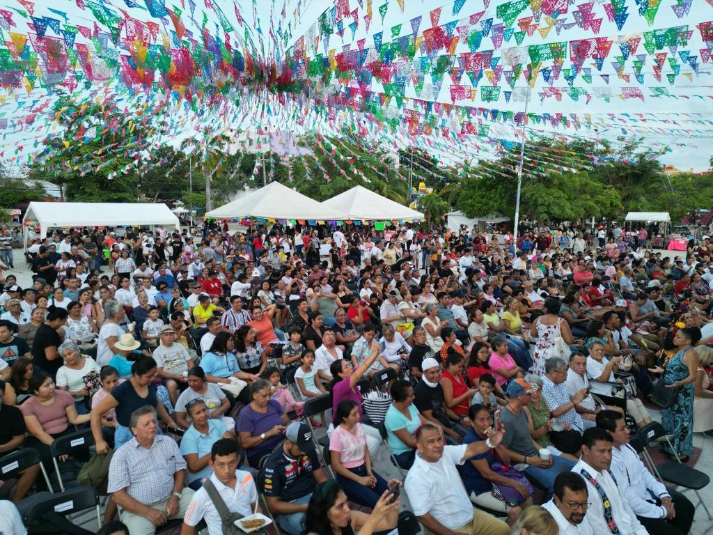 Junto a los cancunenses y visitantes, la Alcaldesa disfrutó de los números de danza y música del folclore del estado hermano, aplaudiendo los números artísticos que deleitaron a la multitud presente.