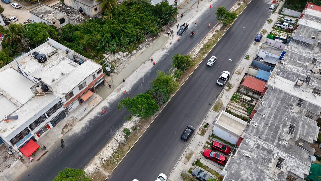 Detalló que en la Av. Kabah hasta la Av. Tules se tiene prácticamente el cien por ciento de pavimentación, siendo una obra que responde a la necesidad prioritaria de rehabilitación integral de la infraestructura vial con calidad para las y los cancunenses.
