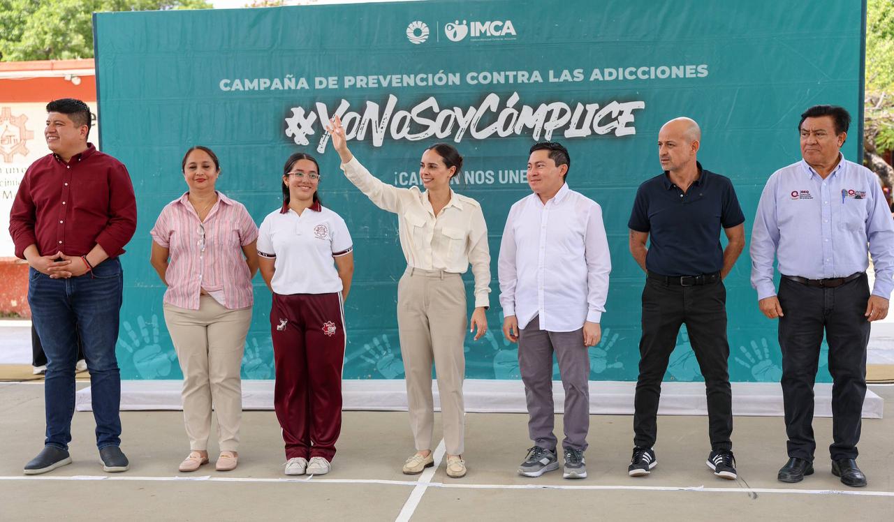 Cancún, Q. R., a 11 de febrero de 2026.– La Presidenta Municipal, Ana Paty Peralta, entregó el reconocimiento “Yo no soy cómplice” a la secundaria técnica No. 11 “Moisés Sáenz Garza”, por su apoyo y compromiso hacia los programas y actividades que realiza de manera permanente el Instituto Municipal Contra las Adicciones (IMCA) bajo el mismo nombre, para que la comunidad estudiantil viva libre de cualquier adicción, luego de la capacitación sobre varios temas a 160 alumnos.