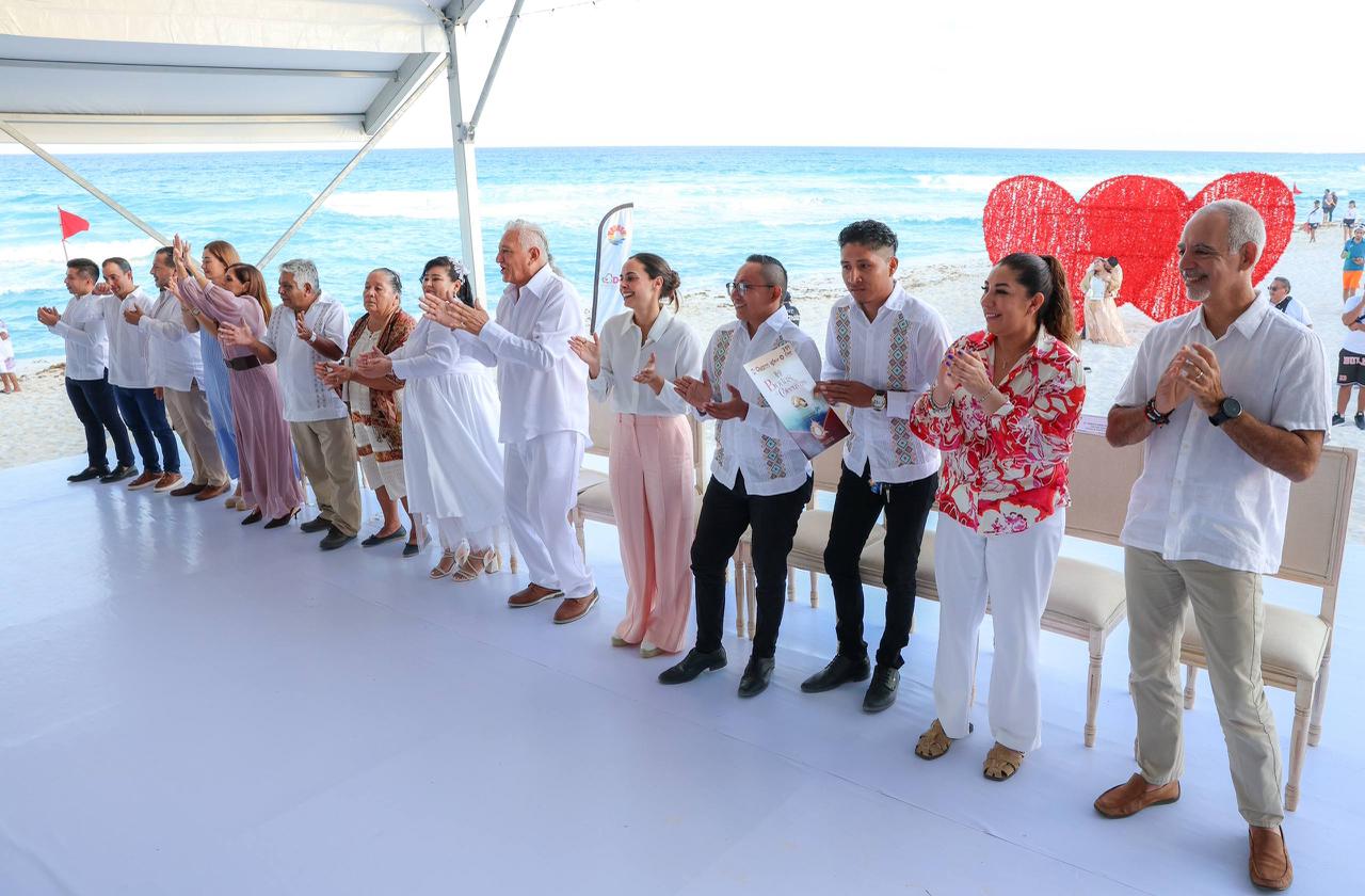 Cancún, Q. R., a 12 de febrero de 2026.– Frente al Mar Caribe y en el marco del Día del Amor y la Amistad, la Presidenta Municipal, Ana Paty Peralta; la gobernadora, Mara Lezama, y la presidenta honoraria del DIF Quintana Roo, Verónica Lezama Espinosa, fungieron como testigos de honor en las Bodas Colectivas 2026 en Playa Delfines, donde 357 parejas contrajeron nupcias en una ceremonia llena de emoción, sonrisas y esperanza.