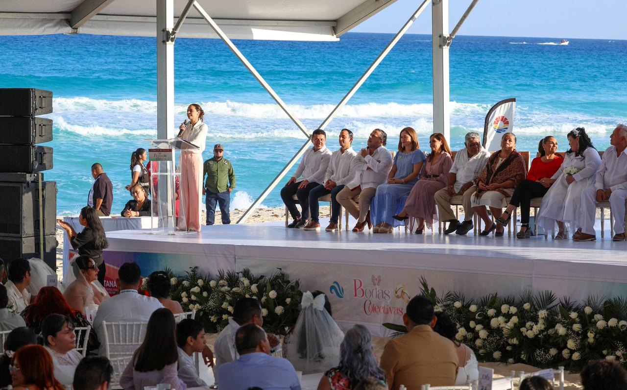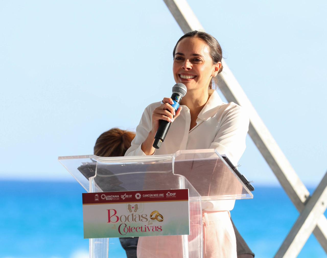 “Hoy estamos de fiesta, porque no solo se casan, hoy fortalecen su familia y fortalecen a Cancún, pues le dan certeza a su relación, le dan estabilidad y ejemplo a sus hijos”, destacó la Alcaldesa.