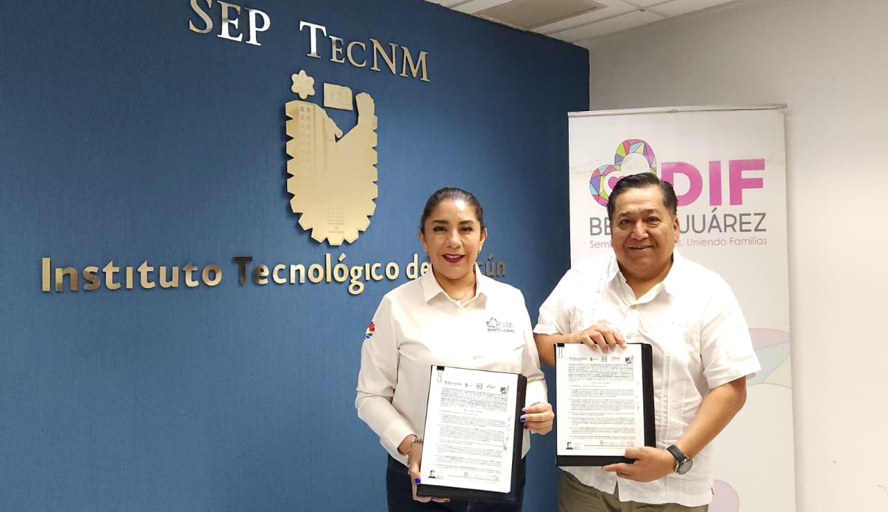 Cabe mencionar que el convenio de colaboración fue firmado por la directora general del Sistema DIF municipal, Marisol Sendo Rodríguez, el director del Instituto Tecnológico de Cancún, Carlos Tiburcio Martínez Martínez y otras autoridades de ambos organismos.