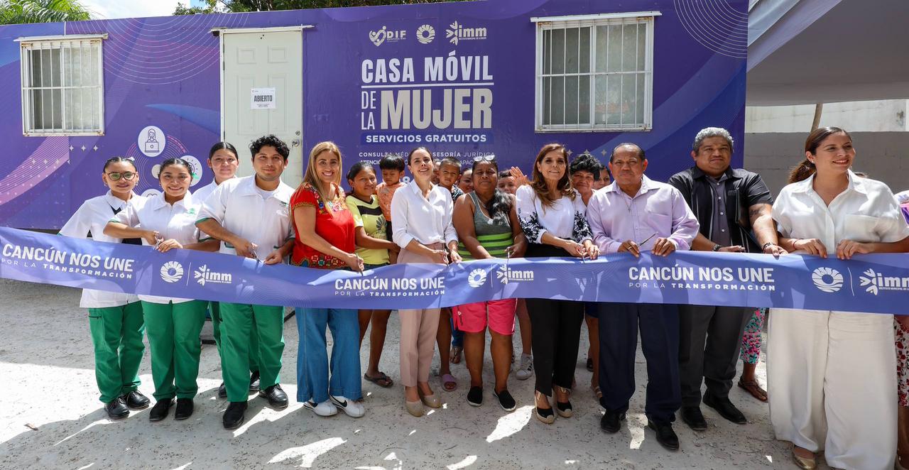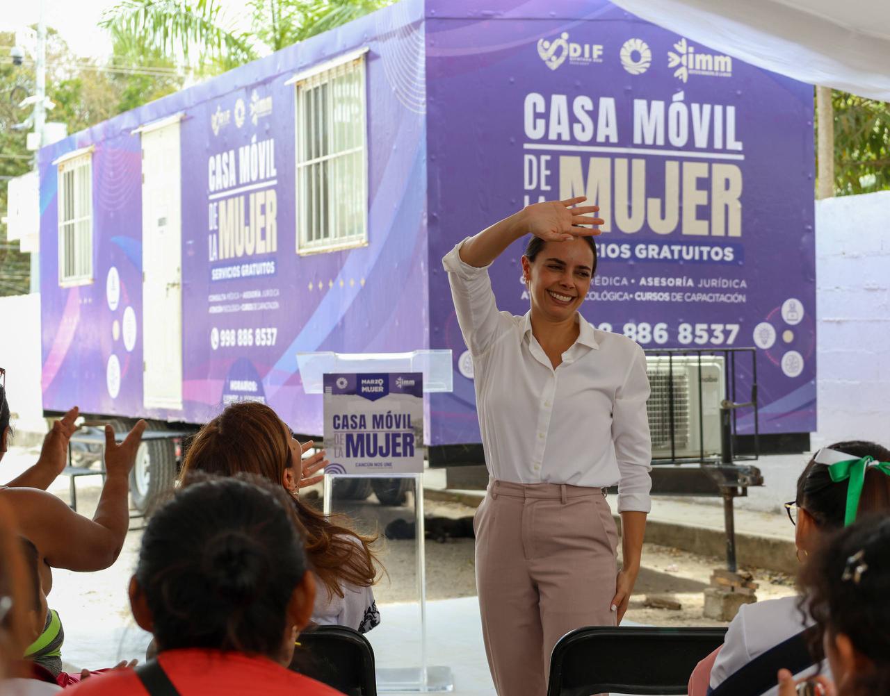 Además, la Alcaldesa añadió que esta unidad va a otorgar servicios gratuitos y recorrerá las diferentes colonias de Cancún acercando servicios de orientación legal, apoyo psicológico, consultas médicas, cursos de capacitación, así como orientación para empezar un negocio, además de realizar el acompañamiento jurídico para quienes se encuentren en algún momento difícil. Informó que en la ciudad hay 13 Casas de la Mujer y una Casa de la Mujer Emprendedora en la 228.