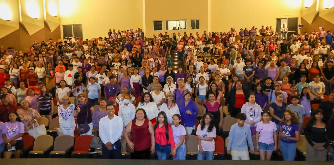 Cancún, Q. R., a 11 de marzo de 2026.- En el marco del Día Internacional de la Mujer, el Ayuntamiento de Benito Juárez, a través de la Secretaría Municipal de Bienestar, llevó a cabo el conversatorio “La Mujer Mexicana en el Sistema de Cuidados y Derechos Humanos”, un espacio de diálogo y reflexión que reunió a cientos de estudiantes del programa “Educación para Transformar”, así como a madres de familia y especialistas en la materia.