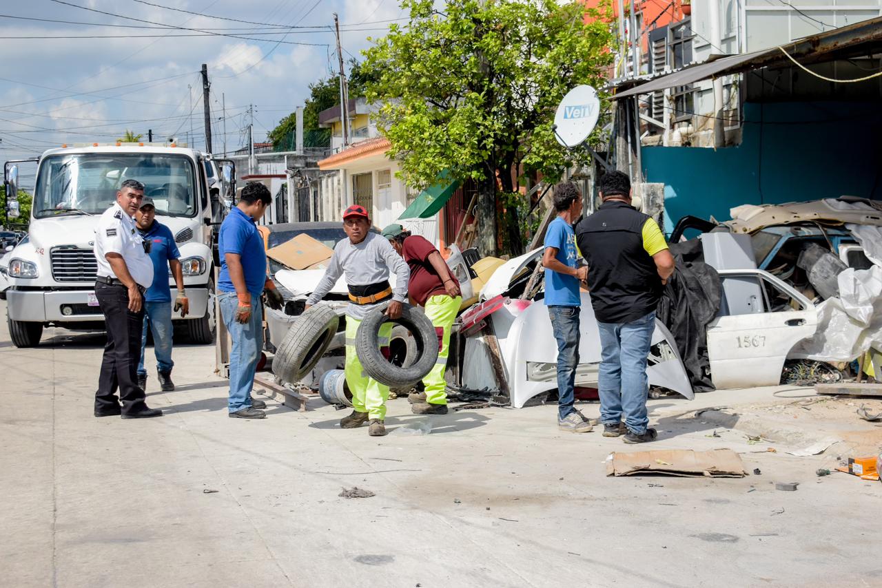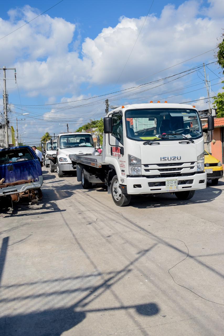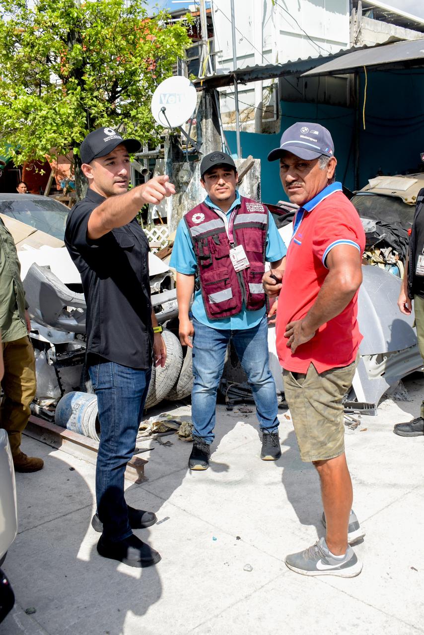 Cancún, Q. R., a 27 de marzo de 2026.- Por instrucciones de la Presidenta Municipal, Ana Paty Peralta, el secretario general del Ayuntamiento, Pablo Gutiérrez Fernández, encabezó un operativo interinstitucional en la Supermanzana 101, tras un reporte de vecinas y vecinos por vehículos abandonados, acumulación de chatarra y desechos que obstruían la vía pública.